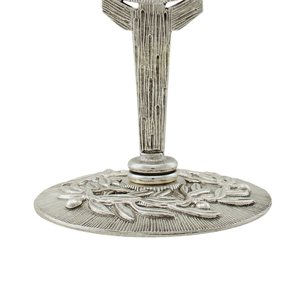 Reliquiario ottone con Gesù e rami di olivo.