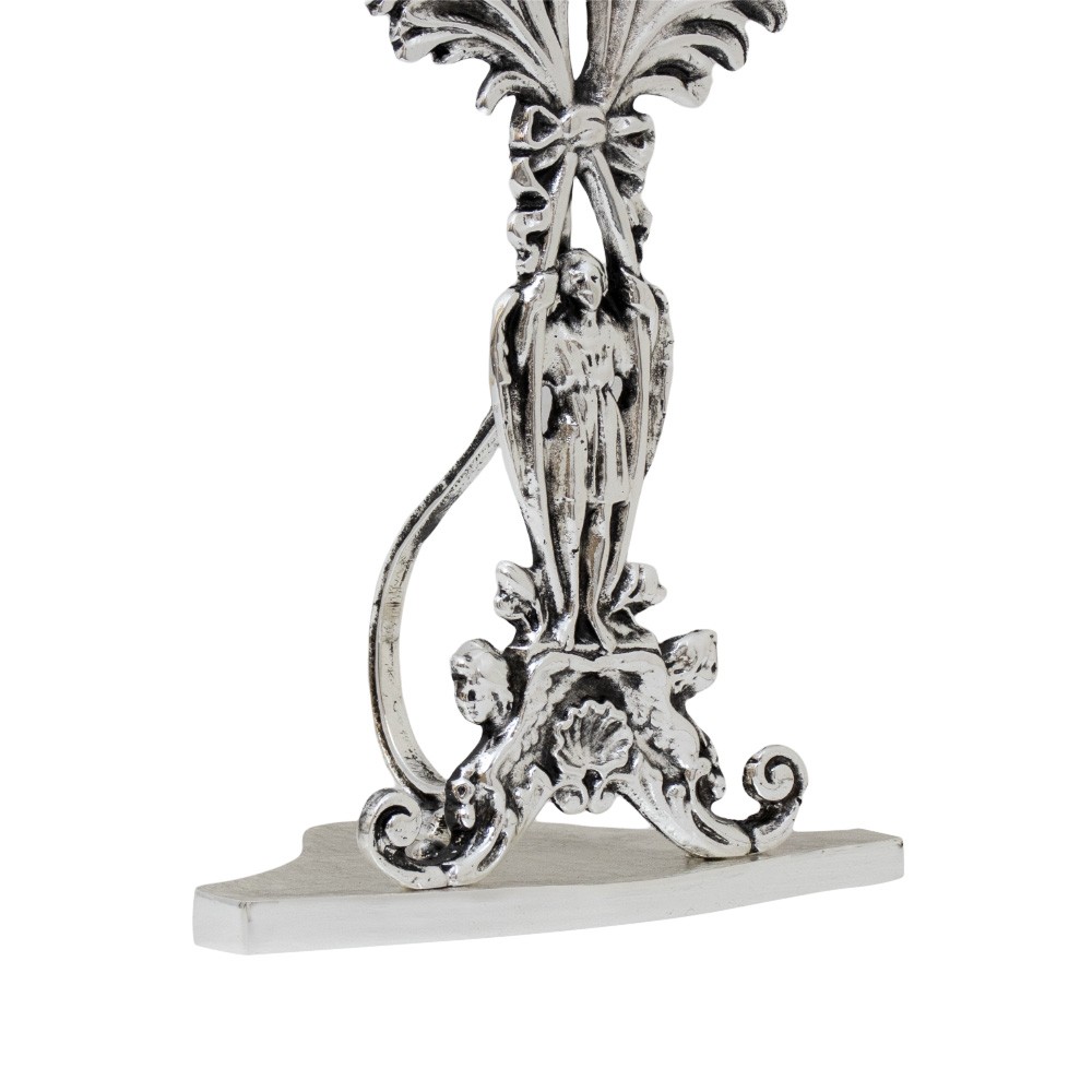 Porta reliquie angelo e motivi floreali, in ottone dorato, alto 41 cm ca.