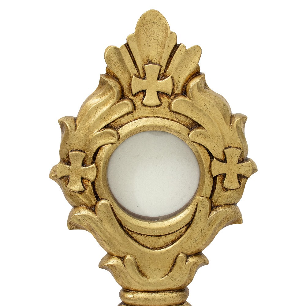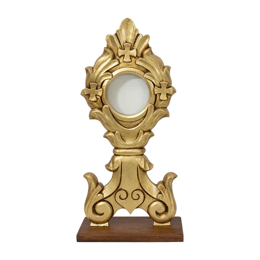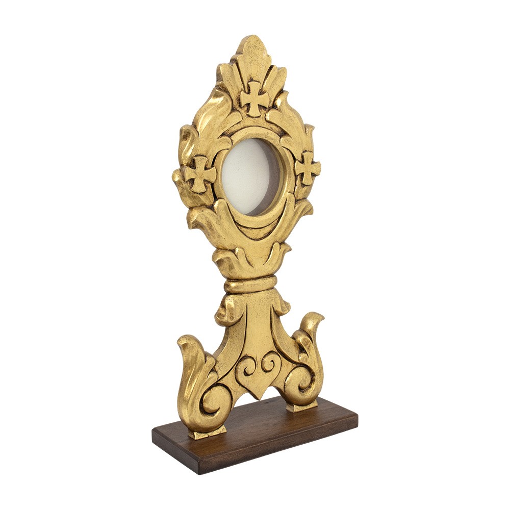Reliquiario alto 46 cm, realizzato interamente in legno massiccio e impreziosito in foglia oro.
