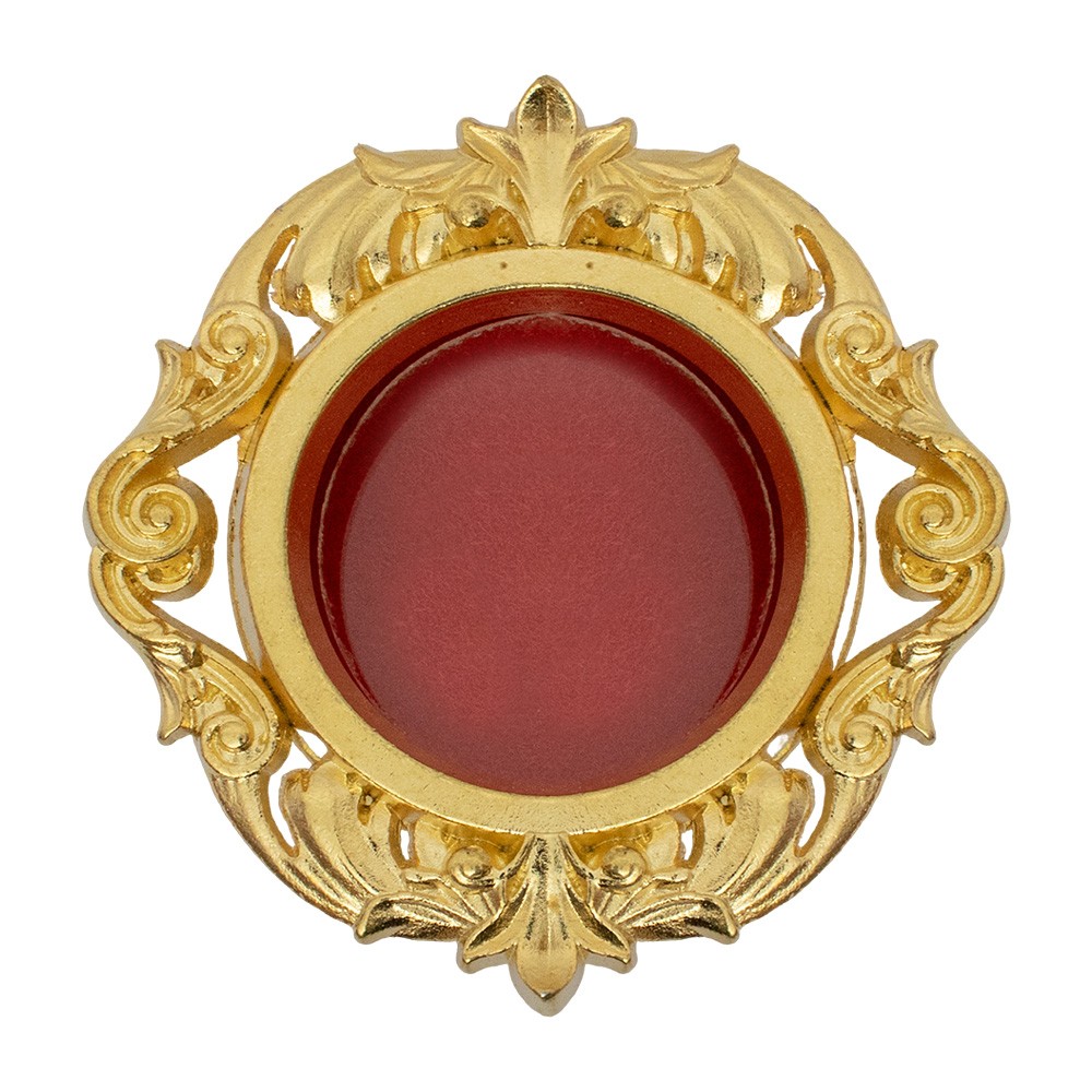 Reliquiario finemente decorato in metallo dorato, completo di anellino per poter appenderlo alla parete.