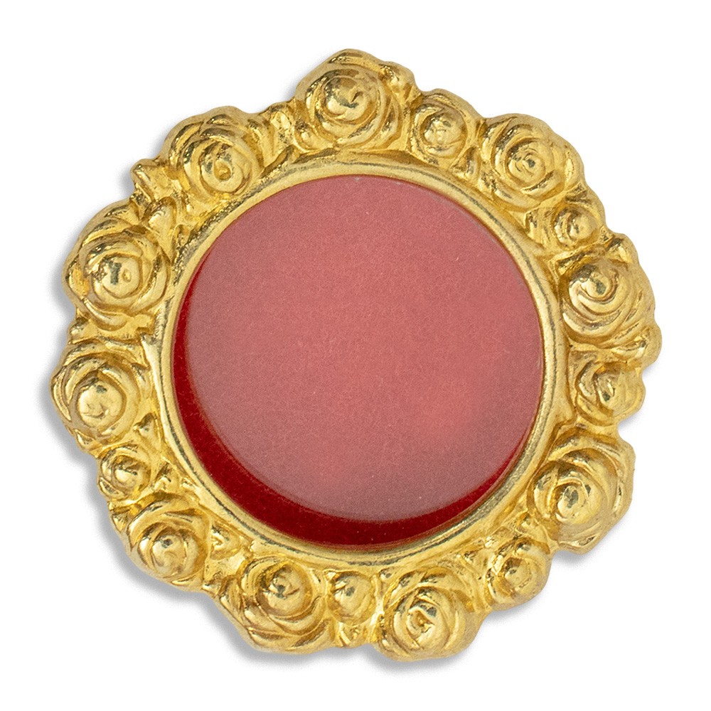 Mini reliquiario in metallo con finitura oro e roselline decorate, completo di anellino per poter appenderlo alla parete.