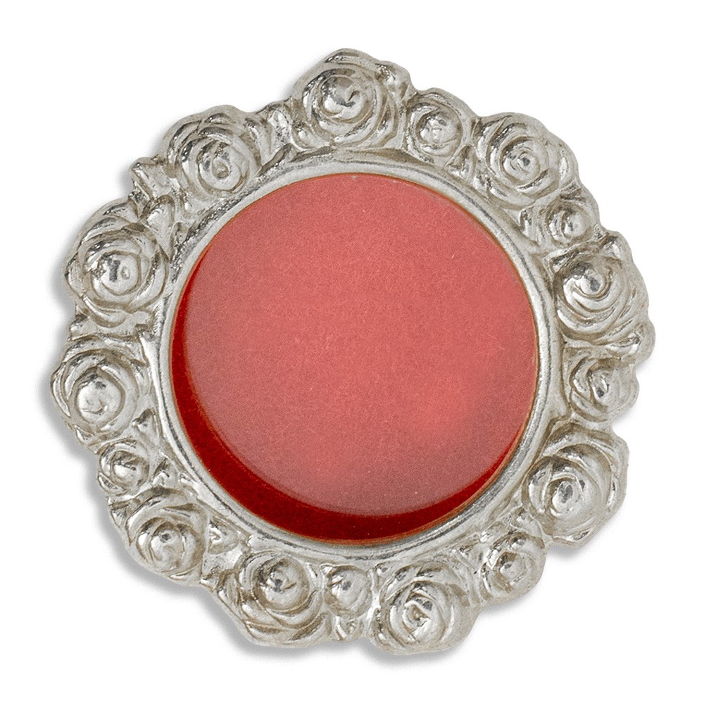 Mini reliquiario in metallo tono argento e roselline decorate, completo di anellino per poter appenderlo alla parete.