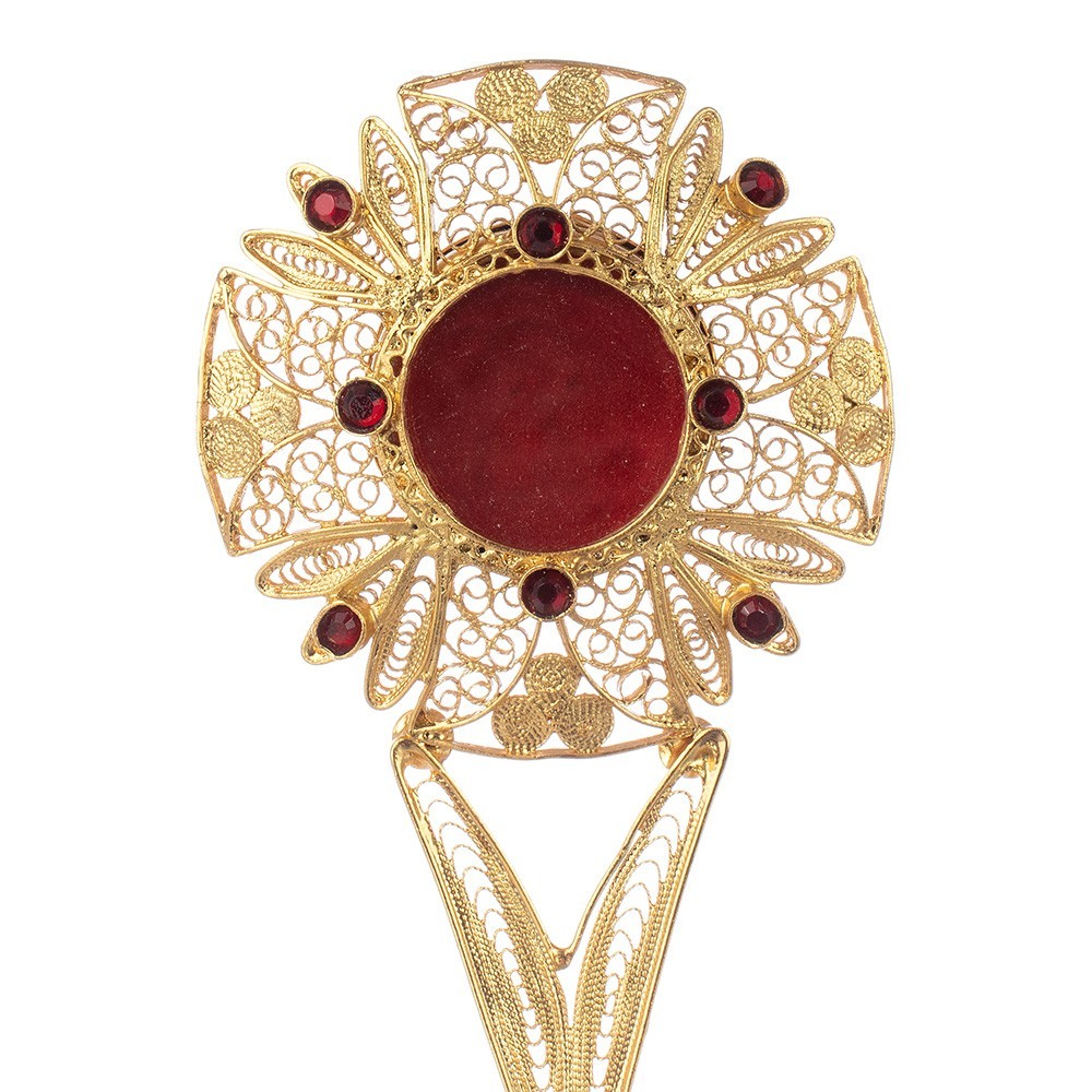 Reliquiario in argento filigranato con bagno oro.