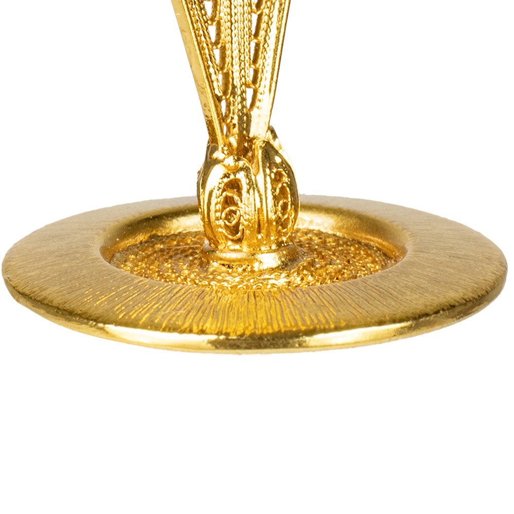 Realizzato in ottone con finitura dorata.