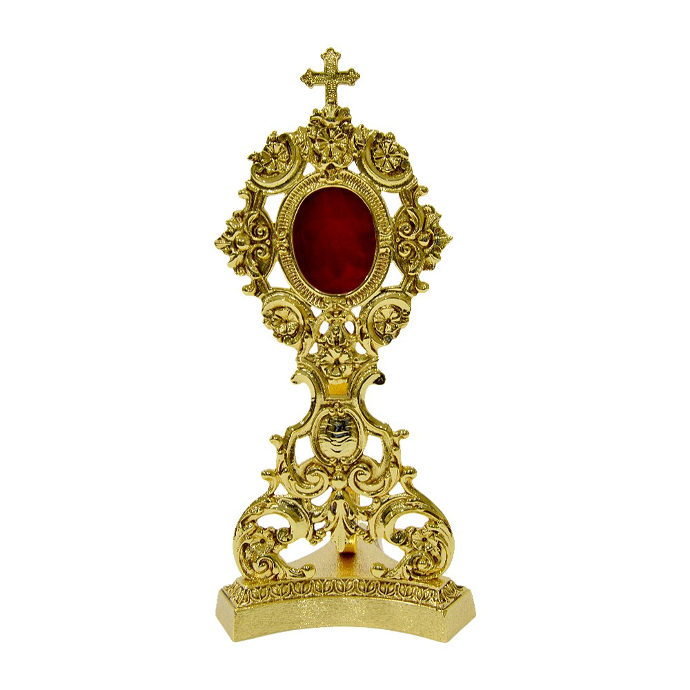 Reliquiario in stile calassico, realizzato in ottone placcato oro 24k con decorazioni floreali.