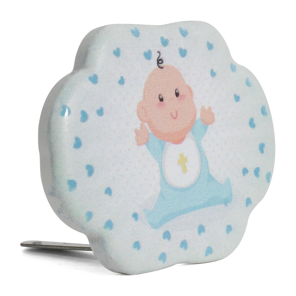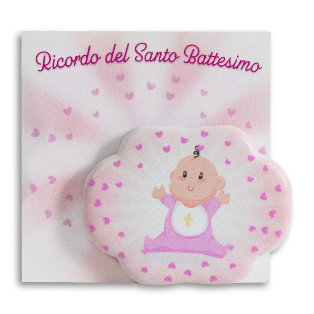 Simpatico magnete per il Battesimo, realizzato in resina porcellanata.