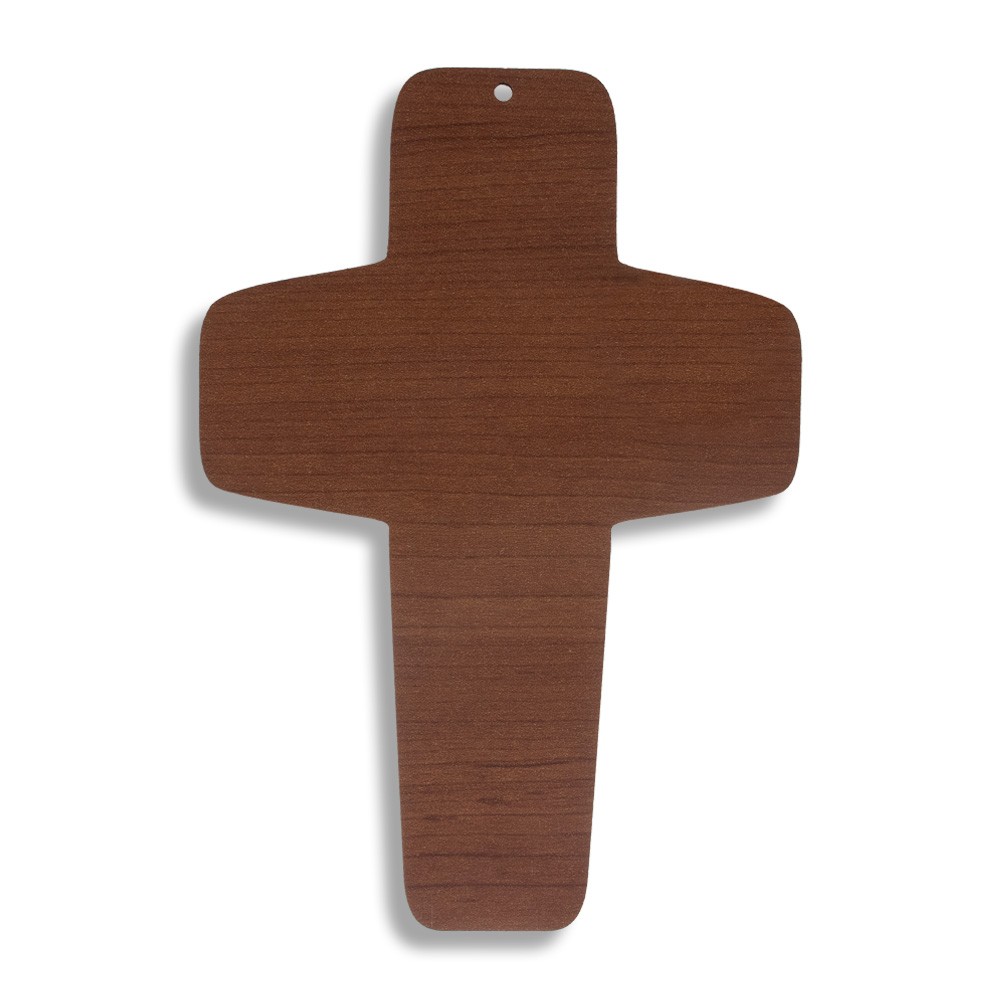 Croce in MDF arancione con immagine dell'Angelo Custode.