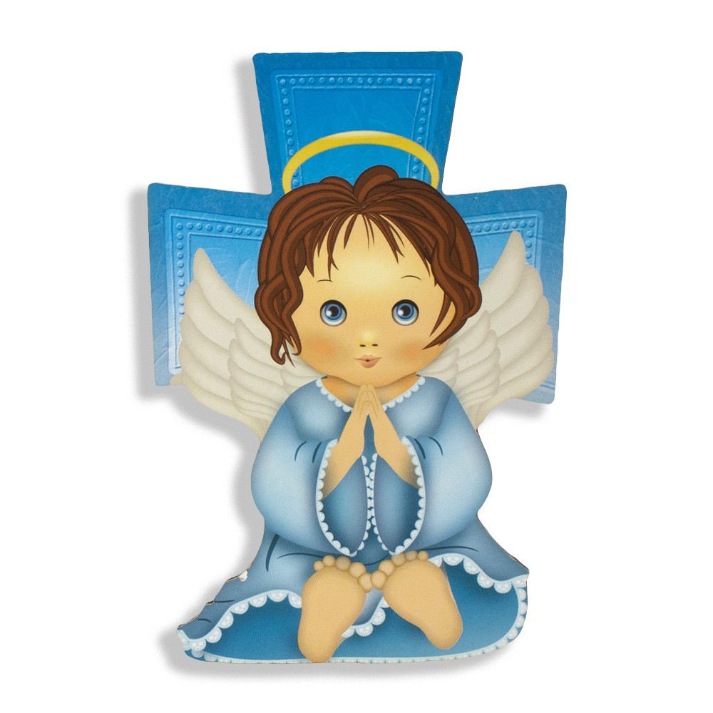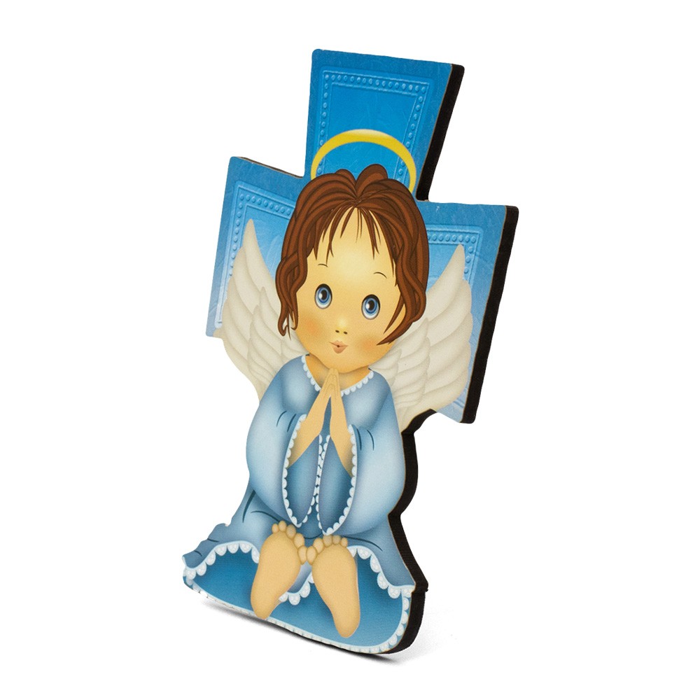 Consegna garantita in 24/48hCroce in MDF blu con immagine dell'Angelo Custode.