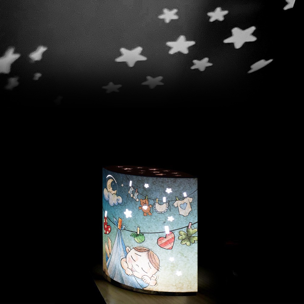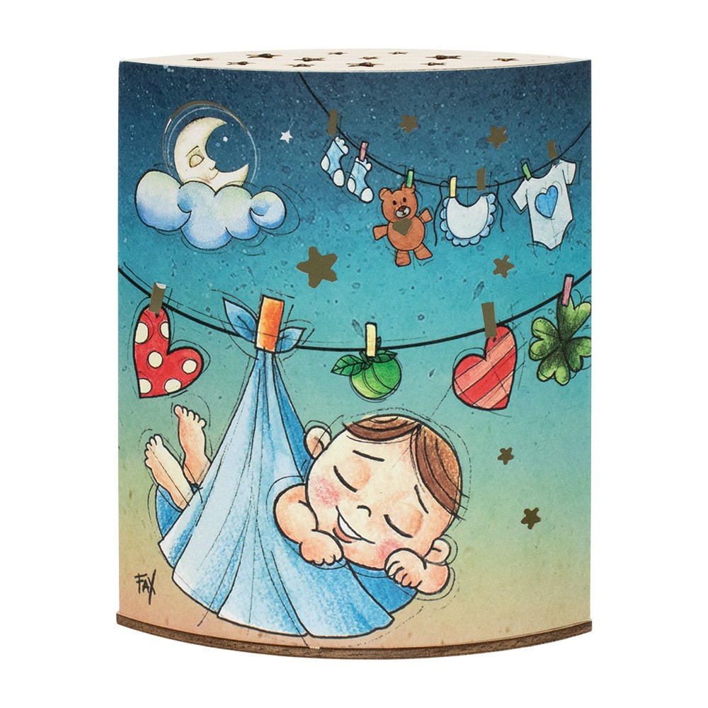 Lampada notturna per cameretta a luce soffusa (alimentata a batteria), ideale come bomboniera per il battesimo ma anche per nascite.