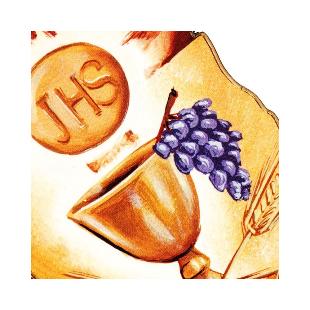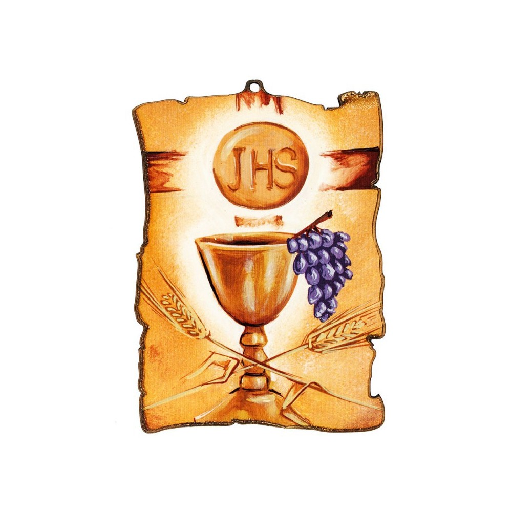 Tavola in legno con simboli eucaristici. Ottima idea regalo per Prima comunione.
