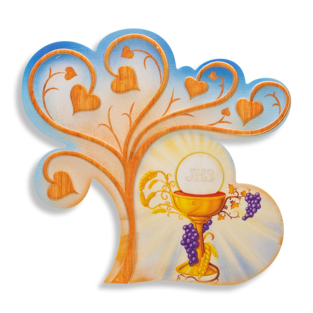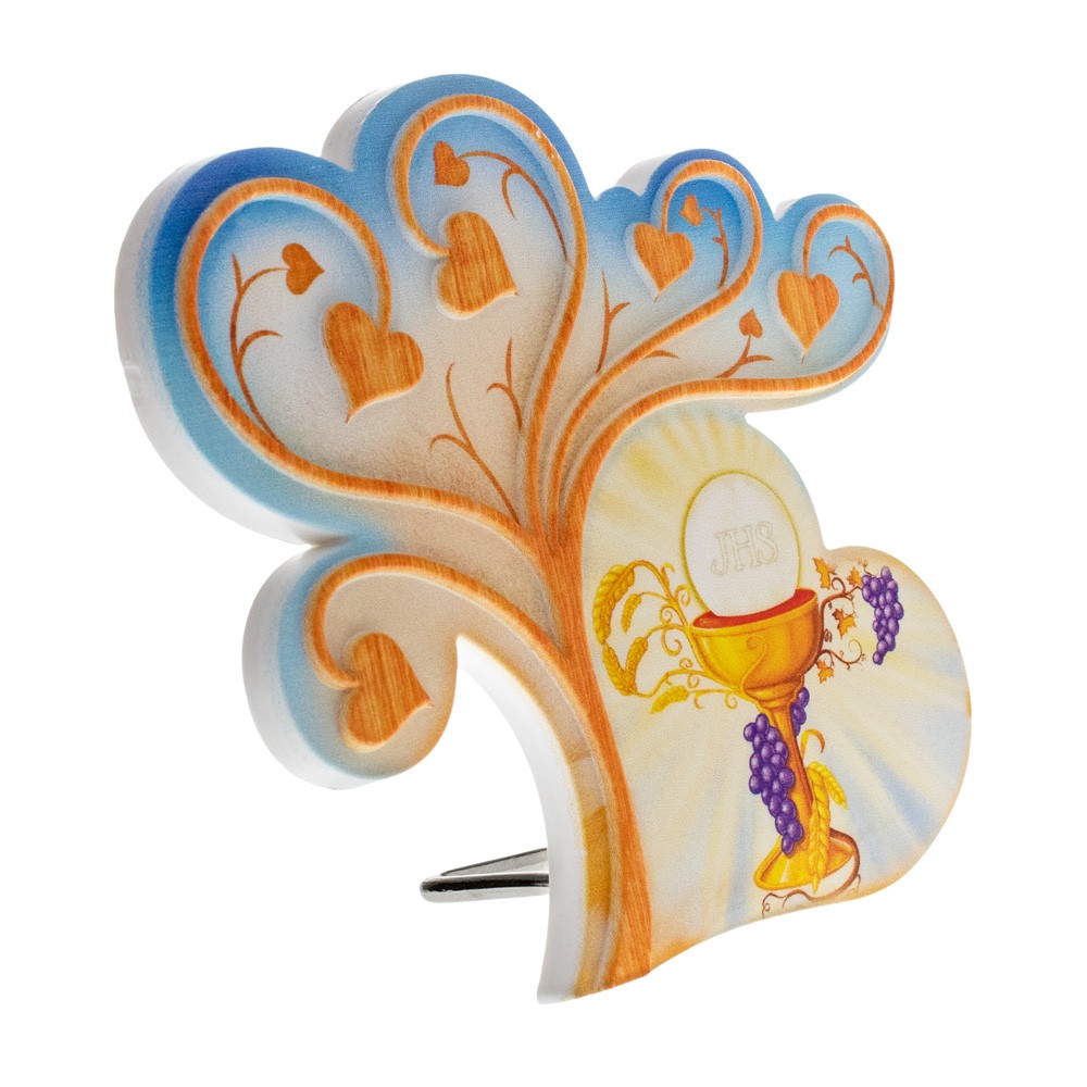 Quadretto Prima comunione sagomato a forma di Albero della vita e cuore.