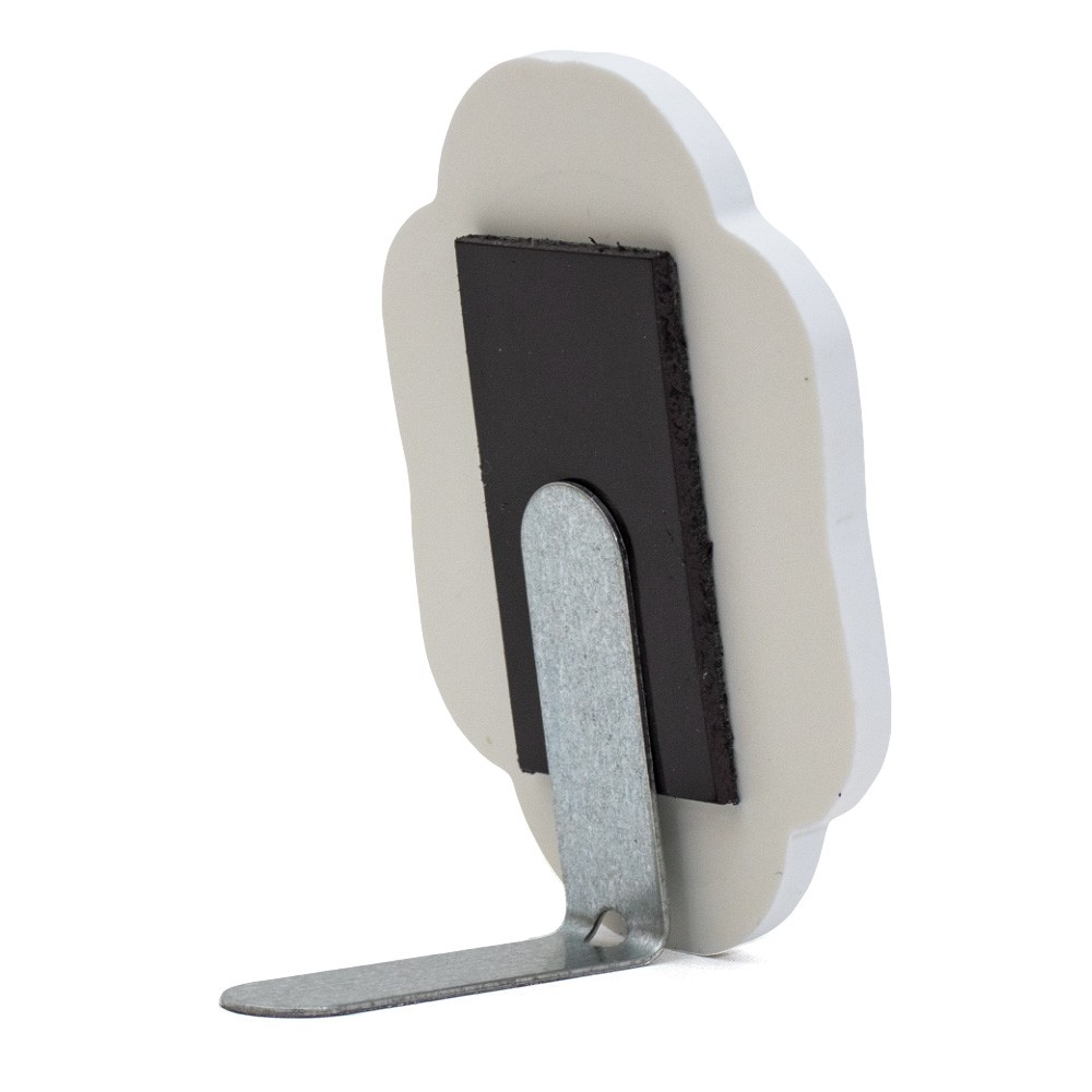 Magnete in resina parcellanato a forma di nuvoletta con stampa dei simboli eucaristici della Prima Comunione.