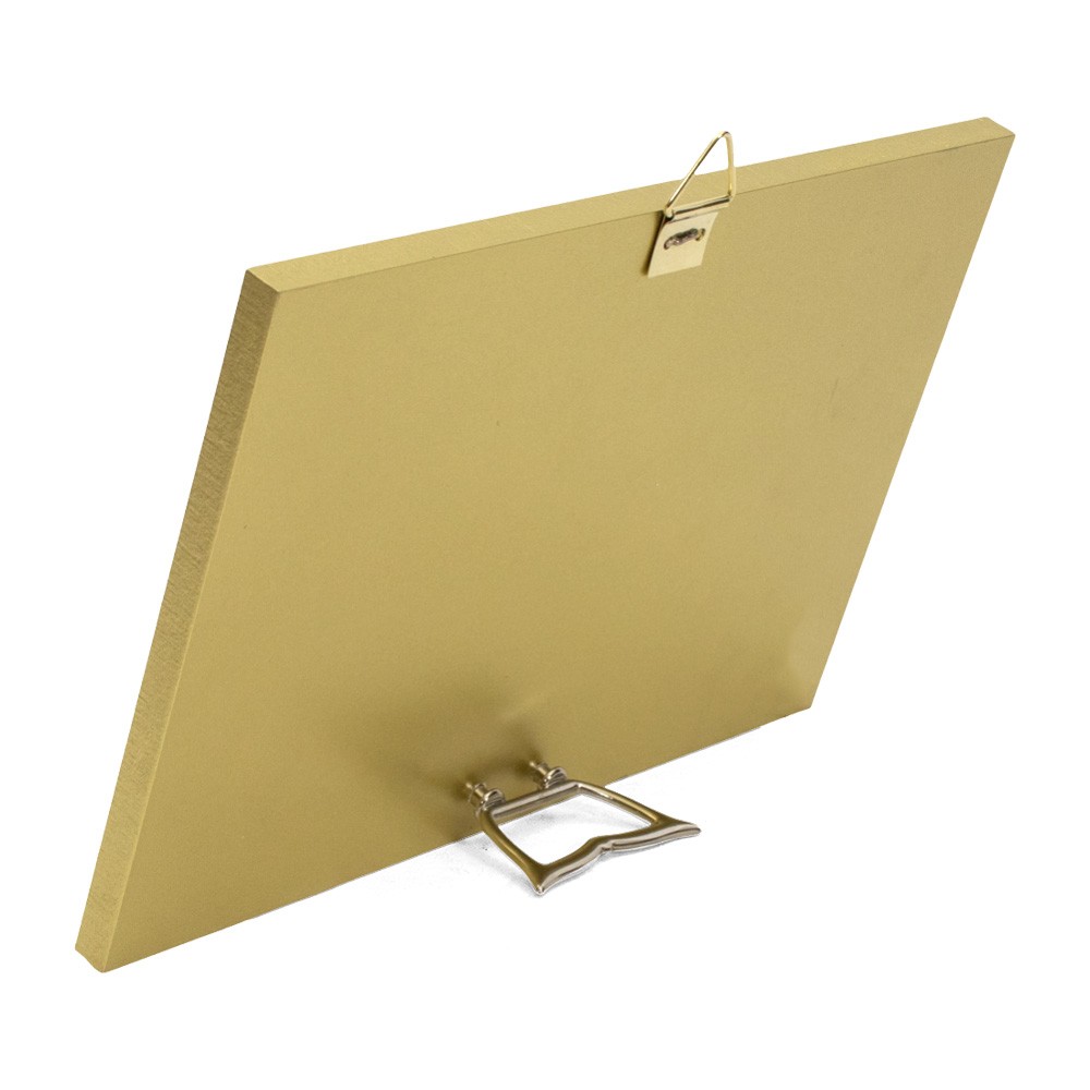 Completo di triangolino per appenderlo alla parete e di piedino d'appoggio.