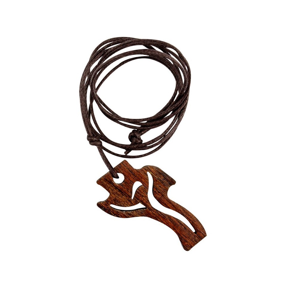 Croce in legno scuro con sagoma del Cristo Risorto. Il pendente è completo di laccio di colore marrone o bianco (secondo diponibilità). Ottima idea regalo per Prima comunione e Prima confessione.