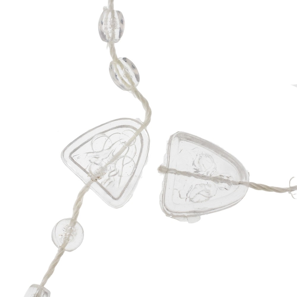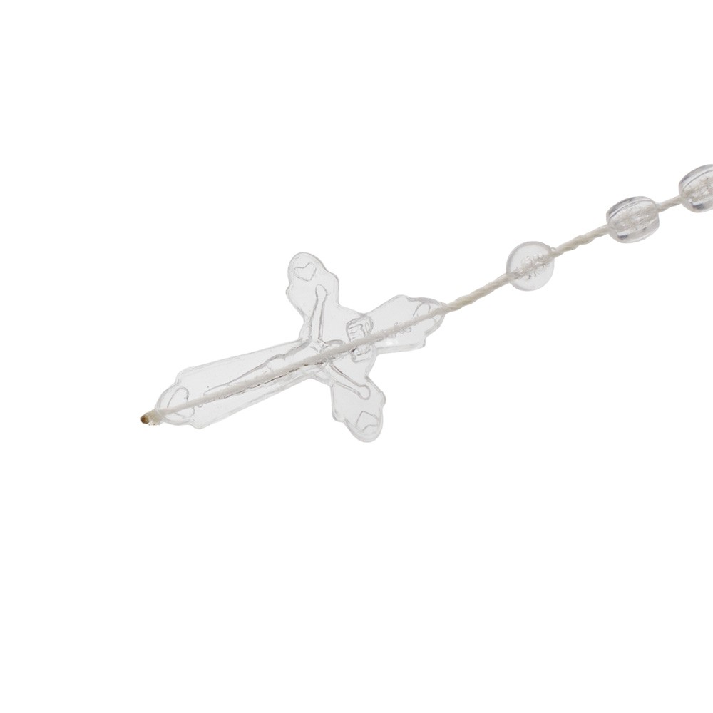 Coroncina del rosario in plastica trasparente con crociera apribile per essere indossata comodamente al collo.