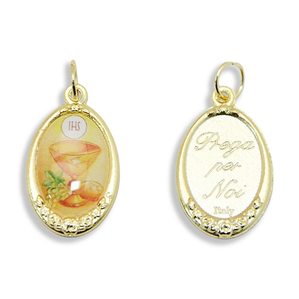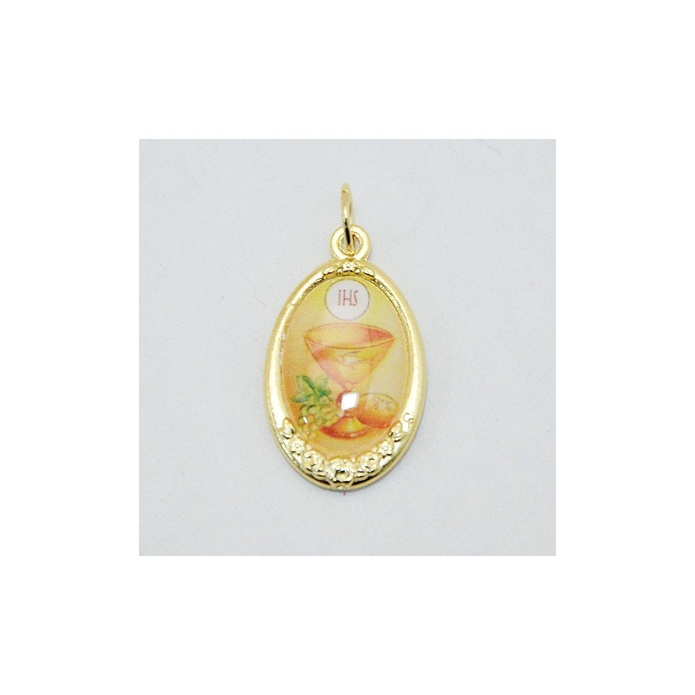 Medaglia dorata con immagine del Calice - Prima Comunione. Ottima idea regalo per il Sacramento della Comunione.
