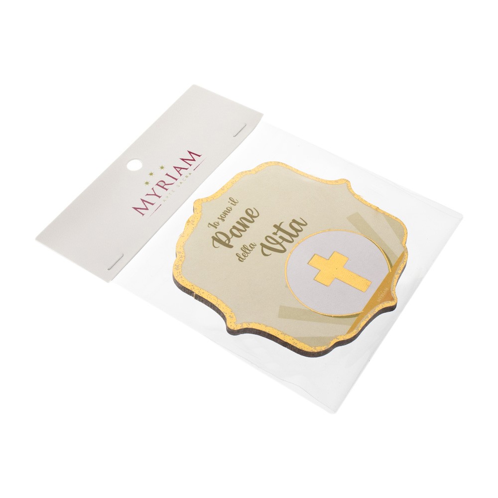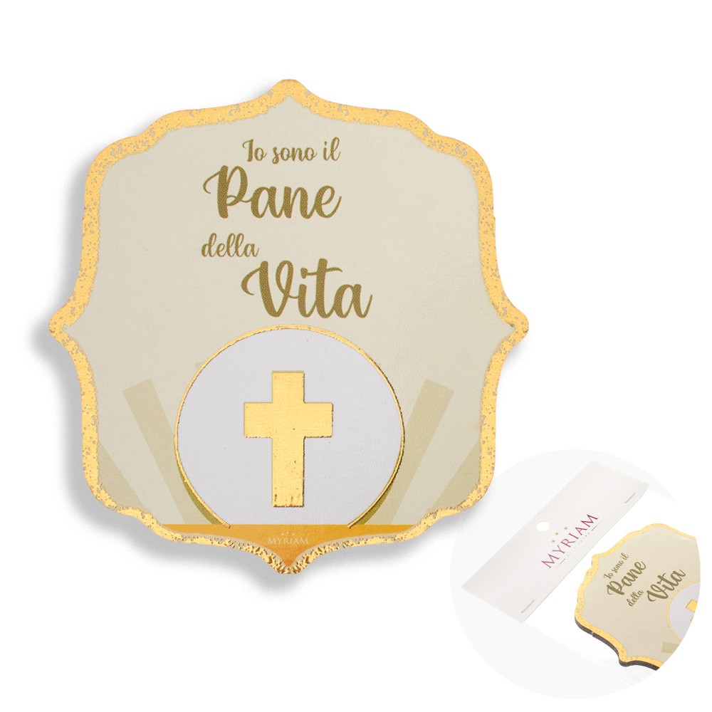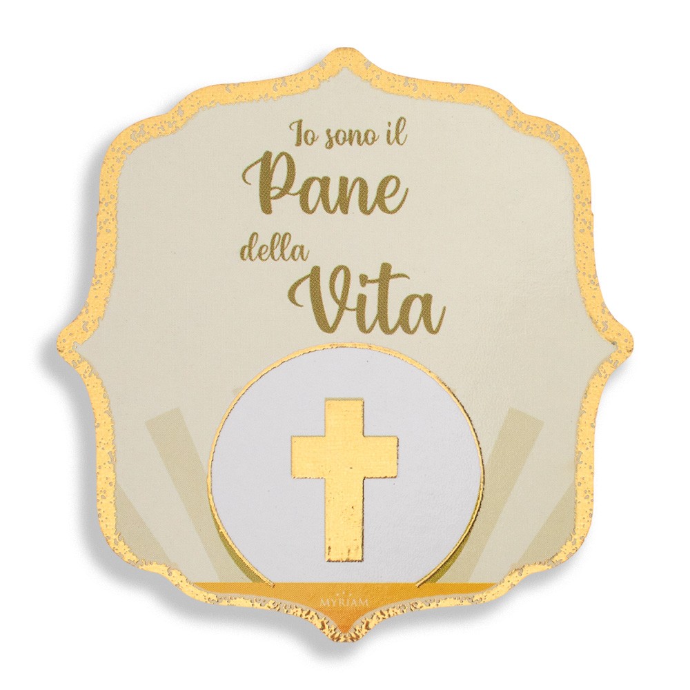 Magnete sagomato con frase stampata " IO SONO IL PANE DELLA VITA ", ottima idea come ricordino o segnaposto per la Prima Comunione.