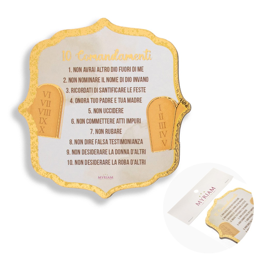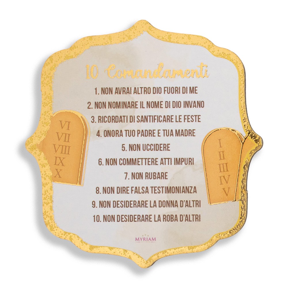 Calamita sagomata con stampa dei Dieci Comandamenti.