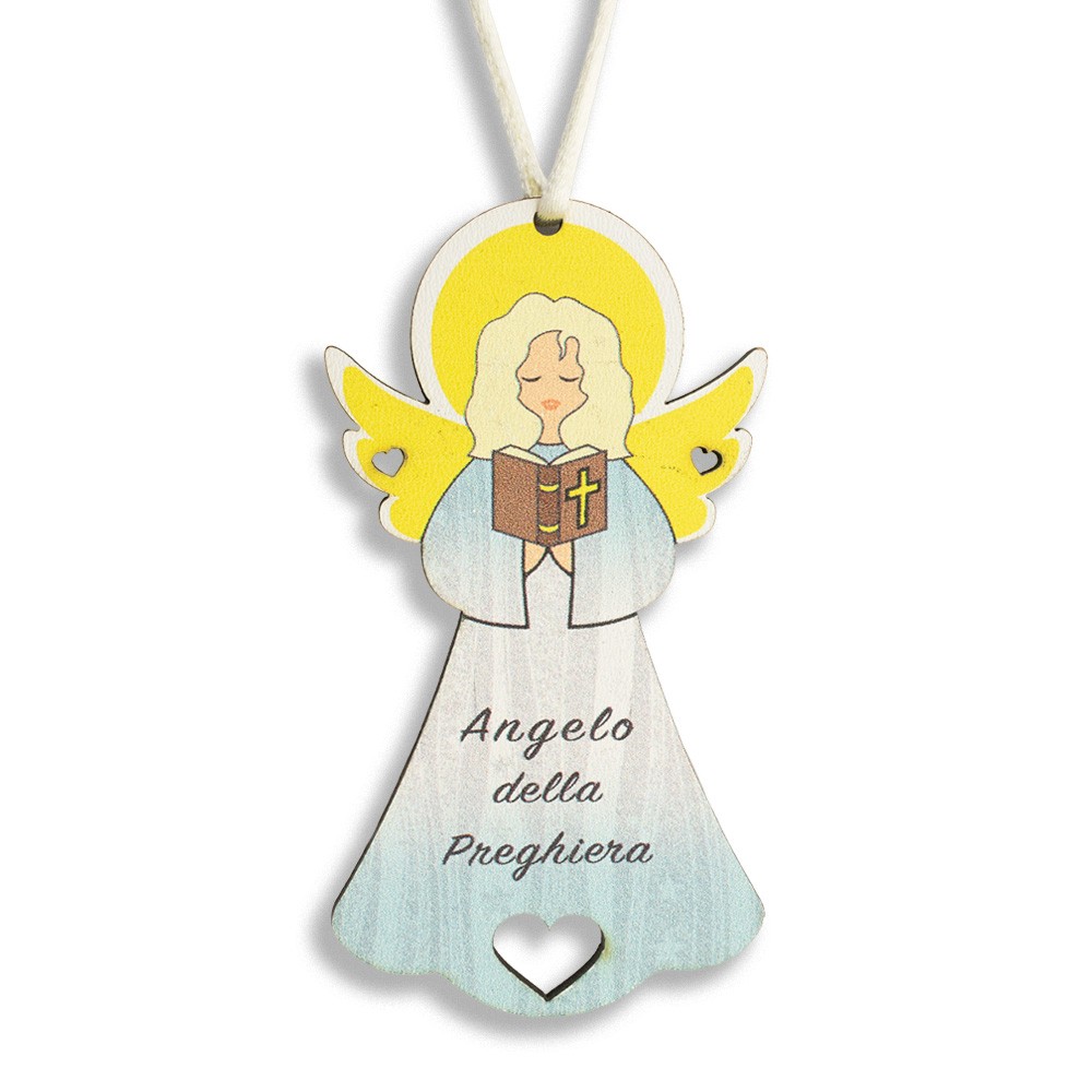 Il magnete è sagomato a forma di angioletto finemente decorato su fondo colorato.