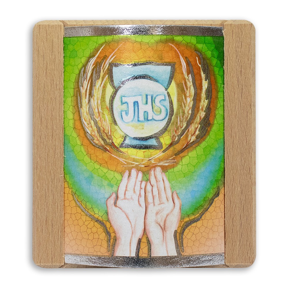 Quadretto Prima Comunione decorato e realizzato in legno di faggio.