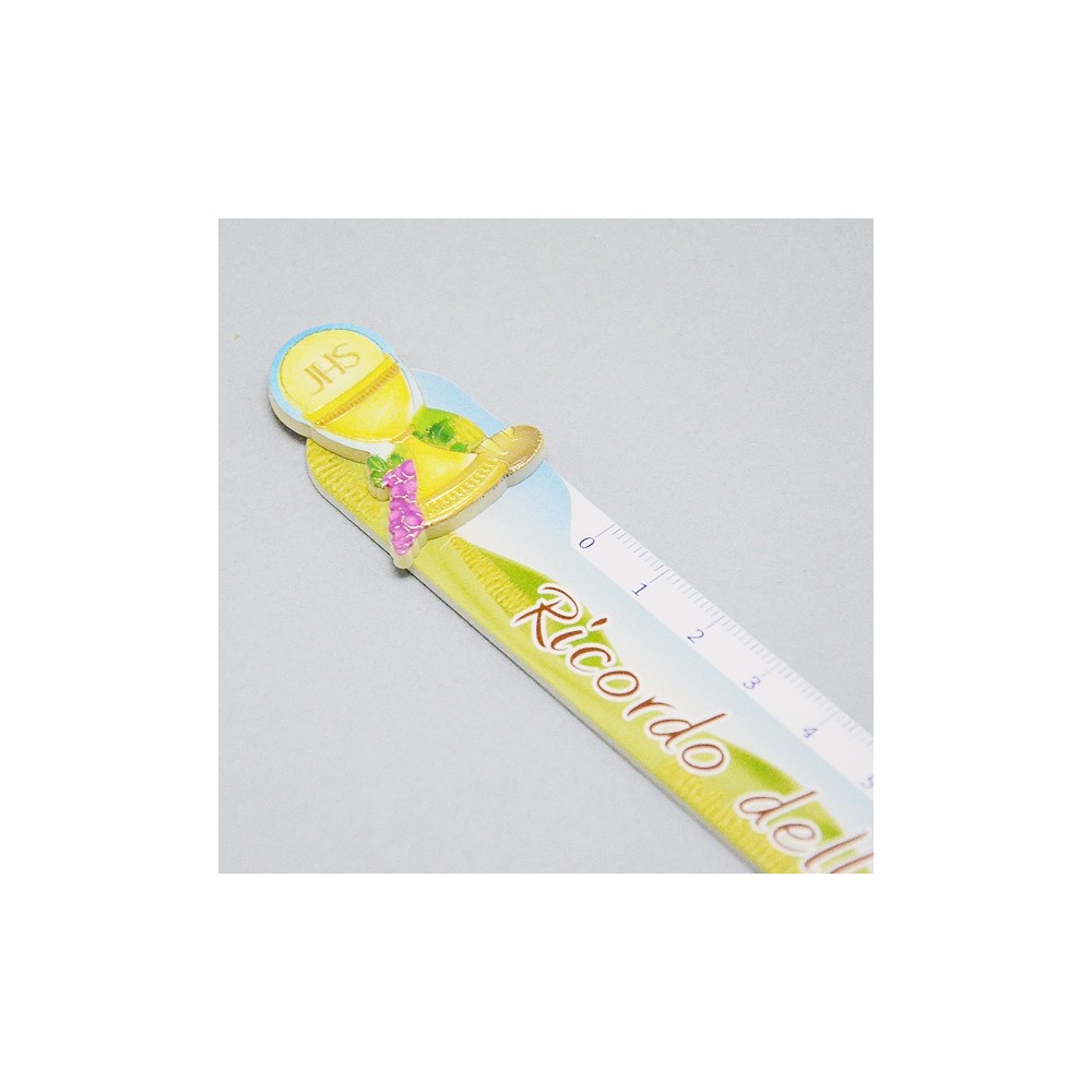 Righello colorato con il simbolo del Calice. Ideale come ricordino per la Prima Comunione.