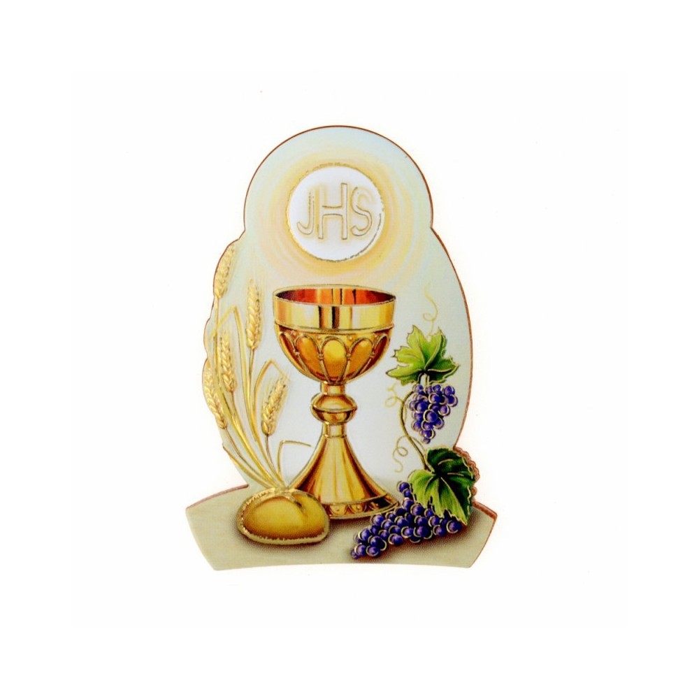 Realizzato in polimero con immagine oro a caldo raffigurante il Sacramento della Prima Comunione. Imbustato. Made in Italy.