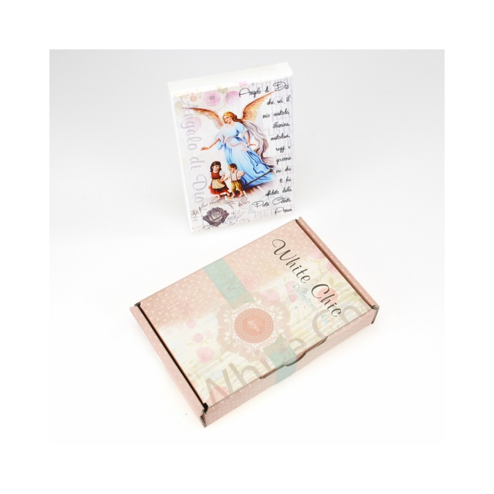 Questo quadretto è realizzato su legno con stampato la Preghiera "Angelo Di Dio". Può essere appoggiato su un tavolo grazie al piedino in metallo. Un'idea molto carina per occasioni speciali o anche per arredare la propria cameretta. Prodotto made in Italy. Corredato di elegante scatola.