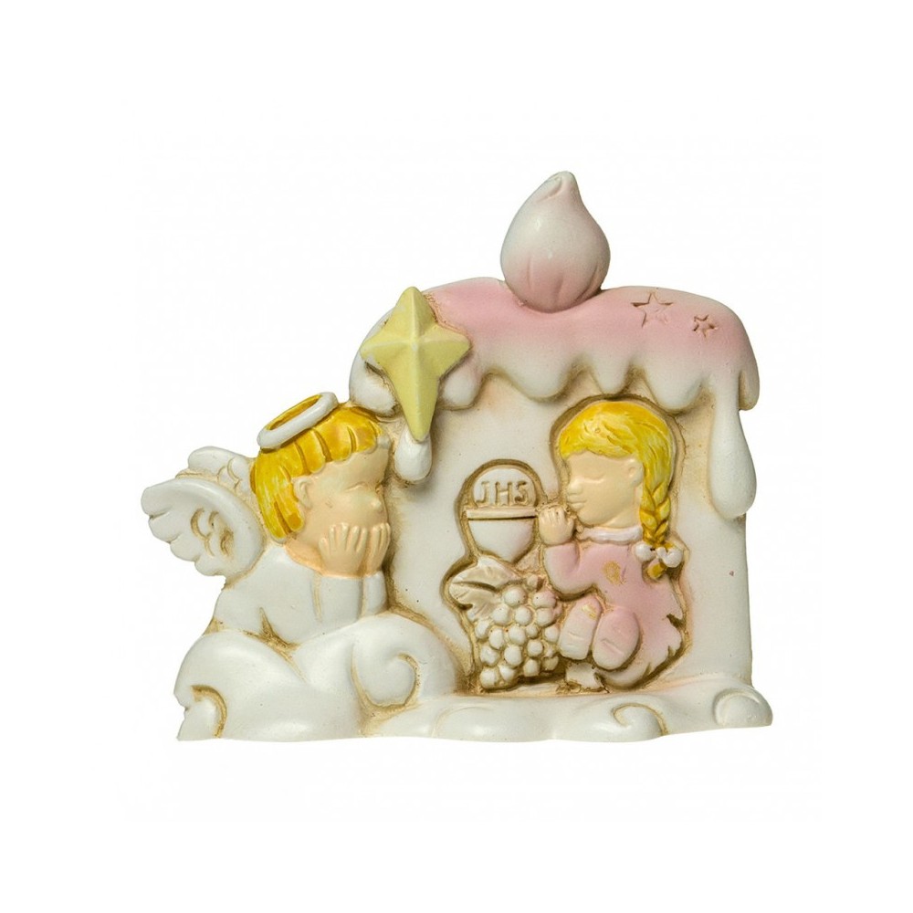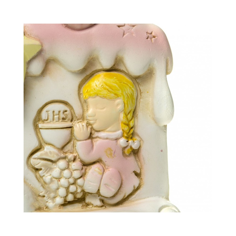 Articolo realizzato in resina a forma di candela con angioletto. Ottima idea regalo per il Sacramento della Comunione.