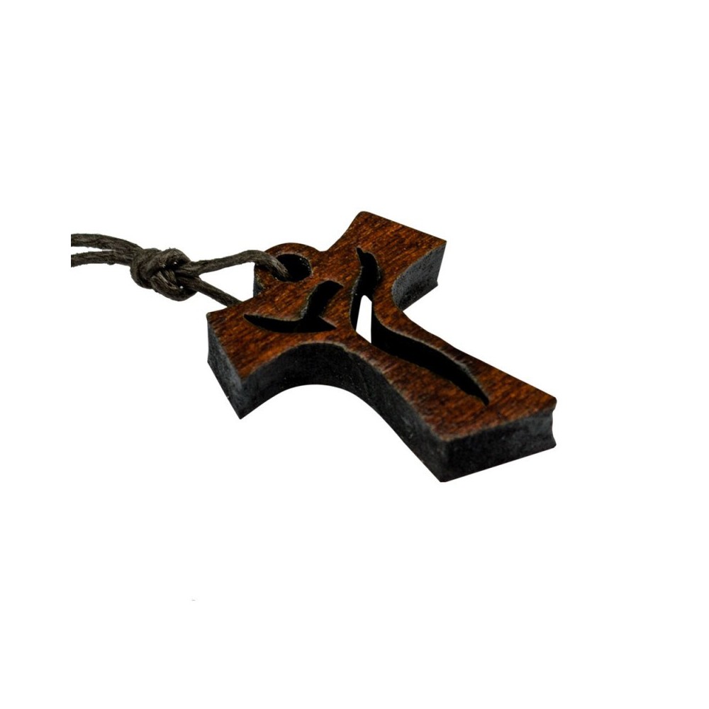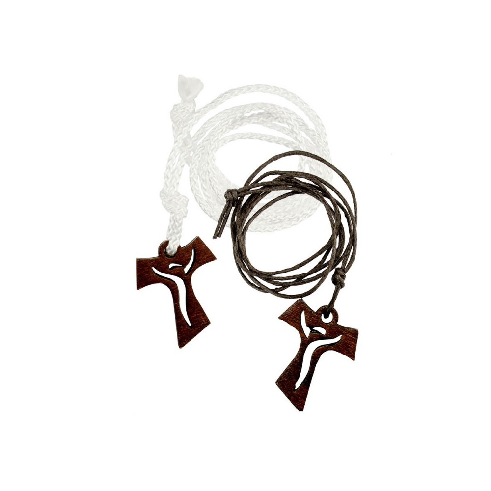 Croce Prima Comunione a forma di Tau in legno scuro. Completo di laccetto marrone o bianco (secondo diponibilità). Ottimo ricordino per Prima comunione e Prima confessione.