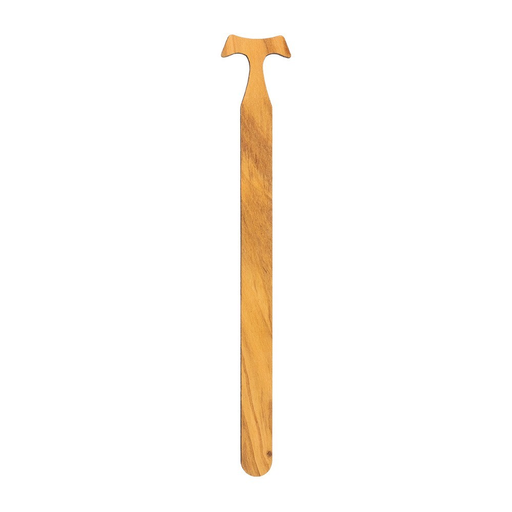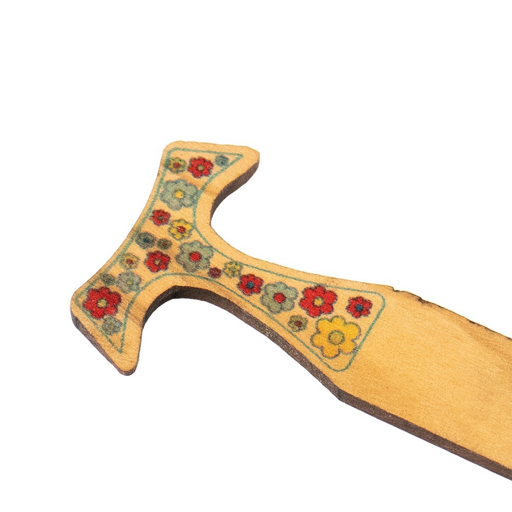 Segnalibro in legno a forma di tau decorato con fiorellini colorati.
