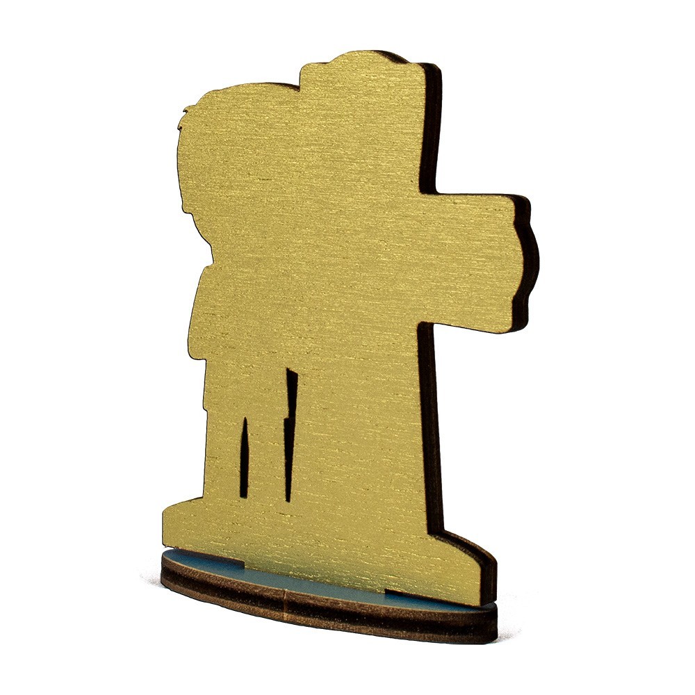 La statuetta è d'appoggio interamente in legno. Confezionata singolarmente. Articolo Made in Italy.