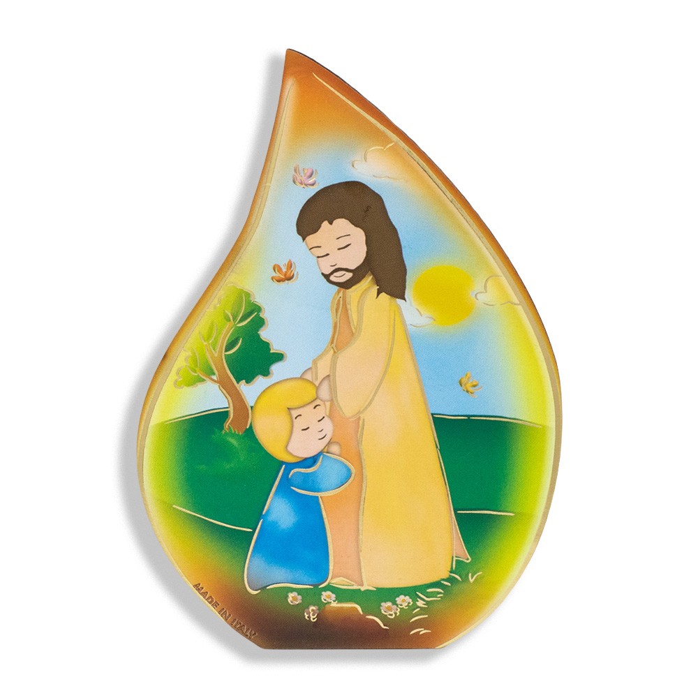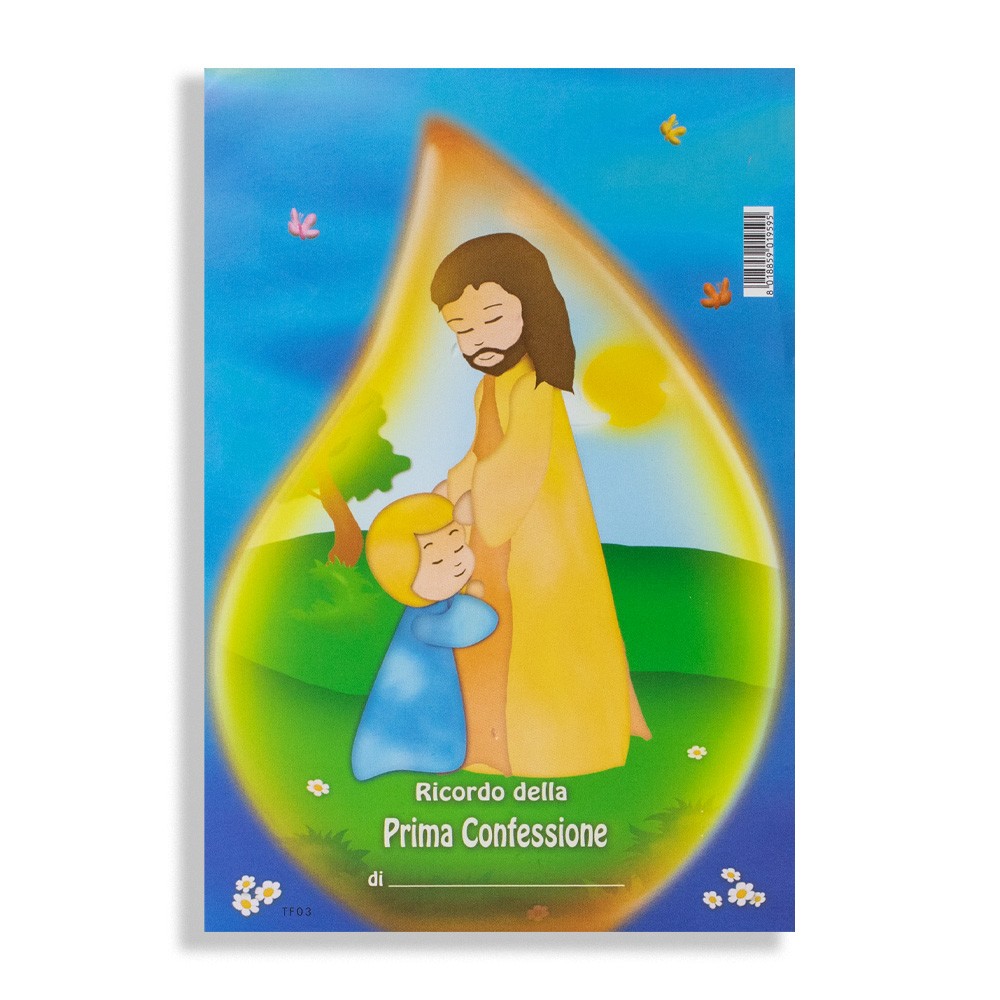 Il quadretto è corredato di piedino d'appoggio in metallo e cartoncino pergamena in ricordo del Prima Confessione.