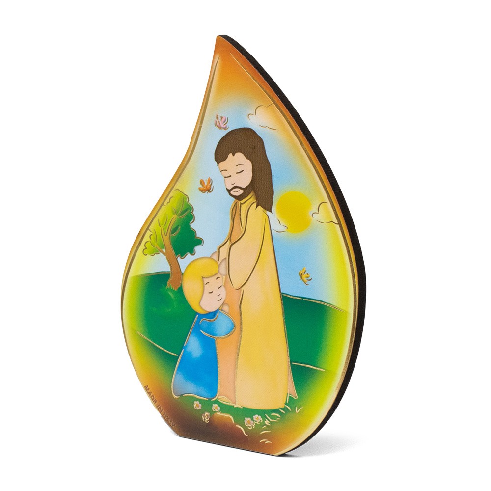 Quadretto Prima Confessione in legno MDF sagomato a forma di fiammella.