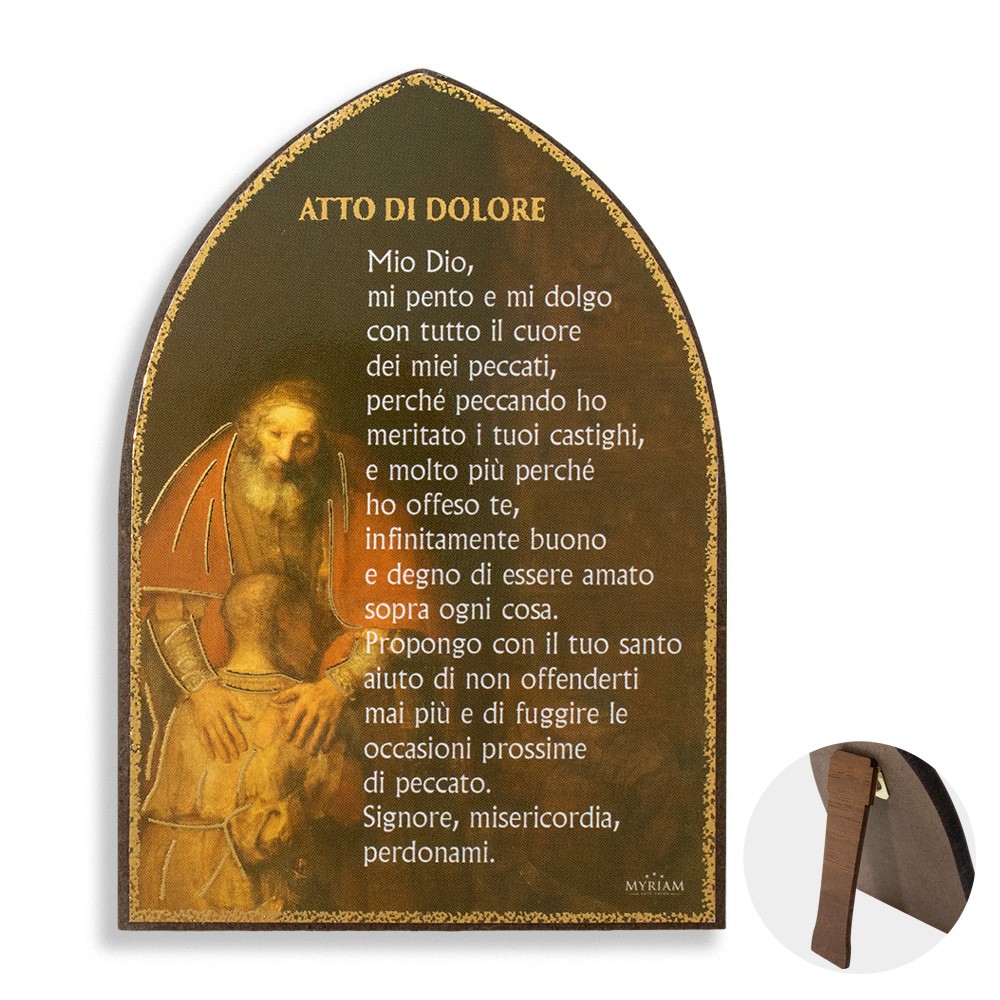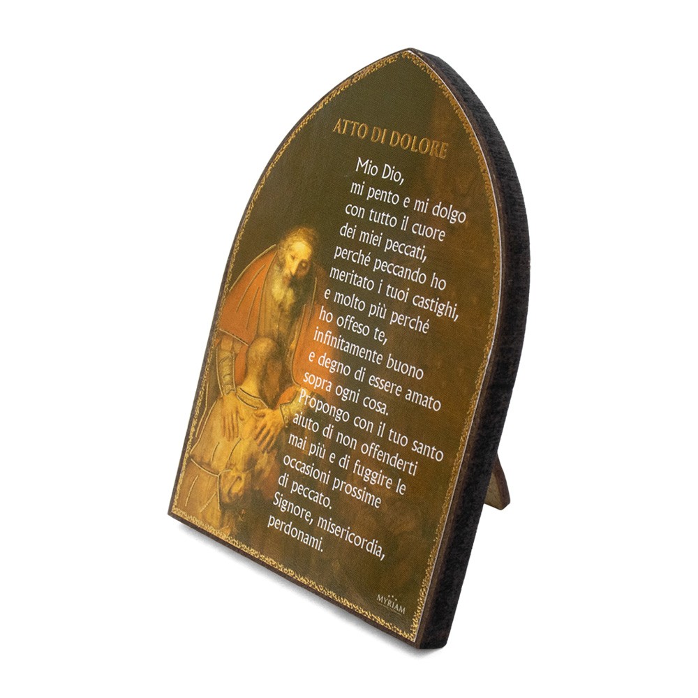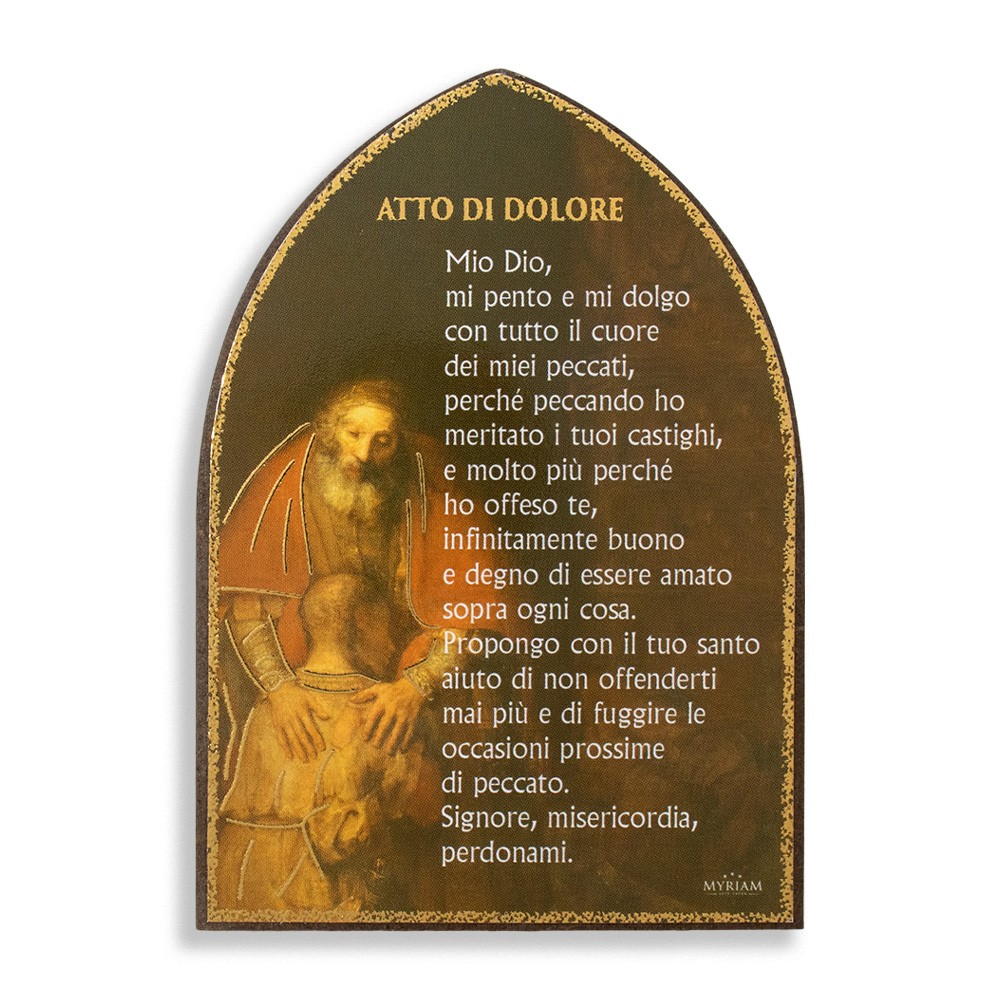 Quadretto Atto di Dolore, realizzato in MDF a forma di cupoletta.