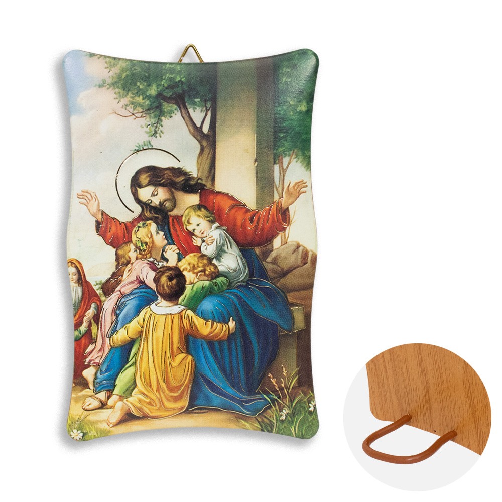 Quadretto con immagine stampata raffigurante Gesù con i pargoli.