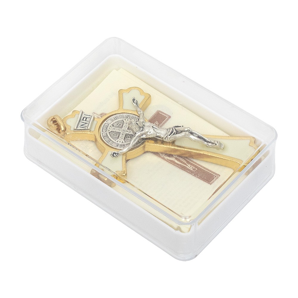 La croce è corredata di scatola rettangolare in plastica, al suo interno troverete anche un cartoncino con la spiegazione della medaglia.