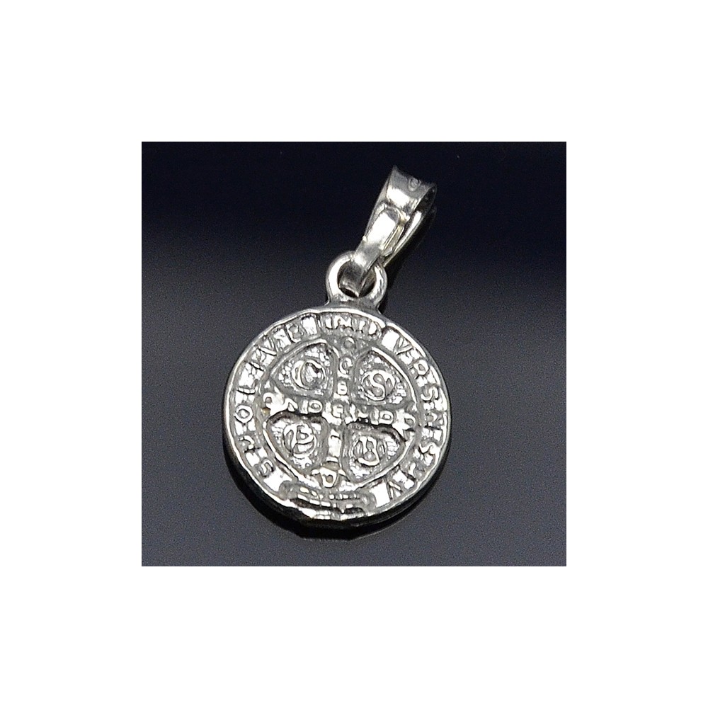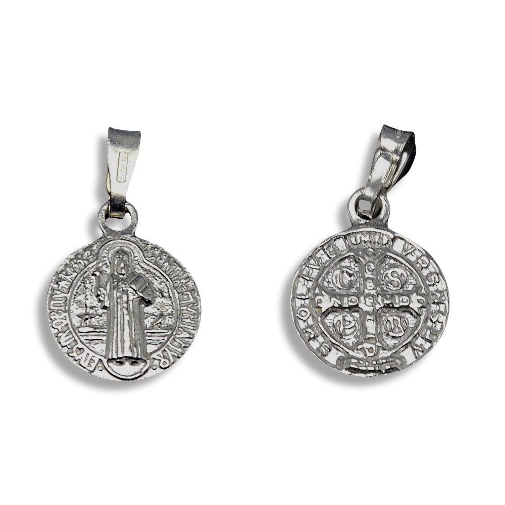 Medaglia con simbolo di San Benedetto da Norcia in argento. Questa medaglia religiosa è la più venduta dopo quella della Madonna Miracolosa.