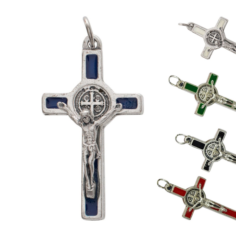 Ottimo crocefisso di metallo e smalto di bel modulo e ben rifinito da entrambe le facce