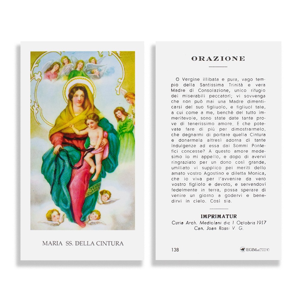 Sul retro di ogni immaginetta è stampata l'orazione a Maria Santissima della Cintura.