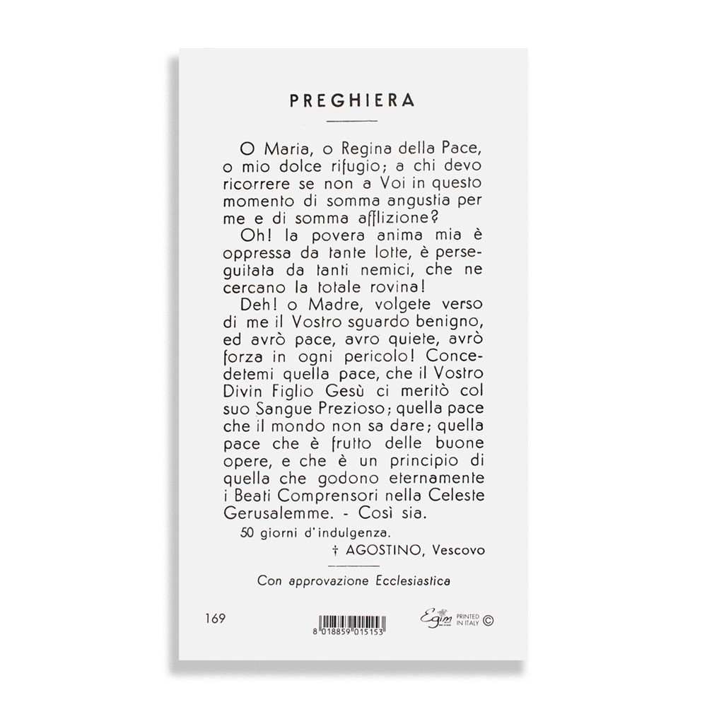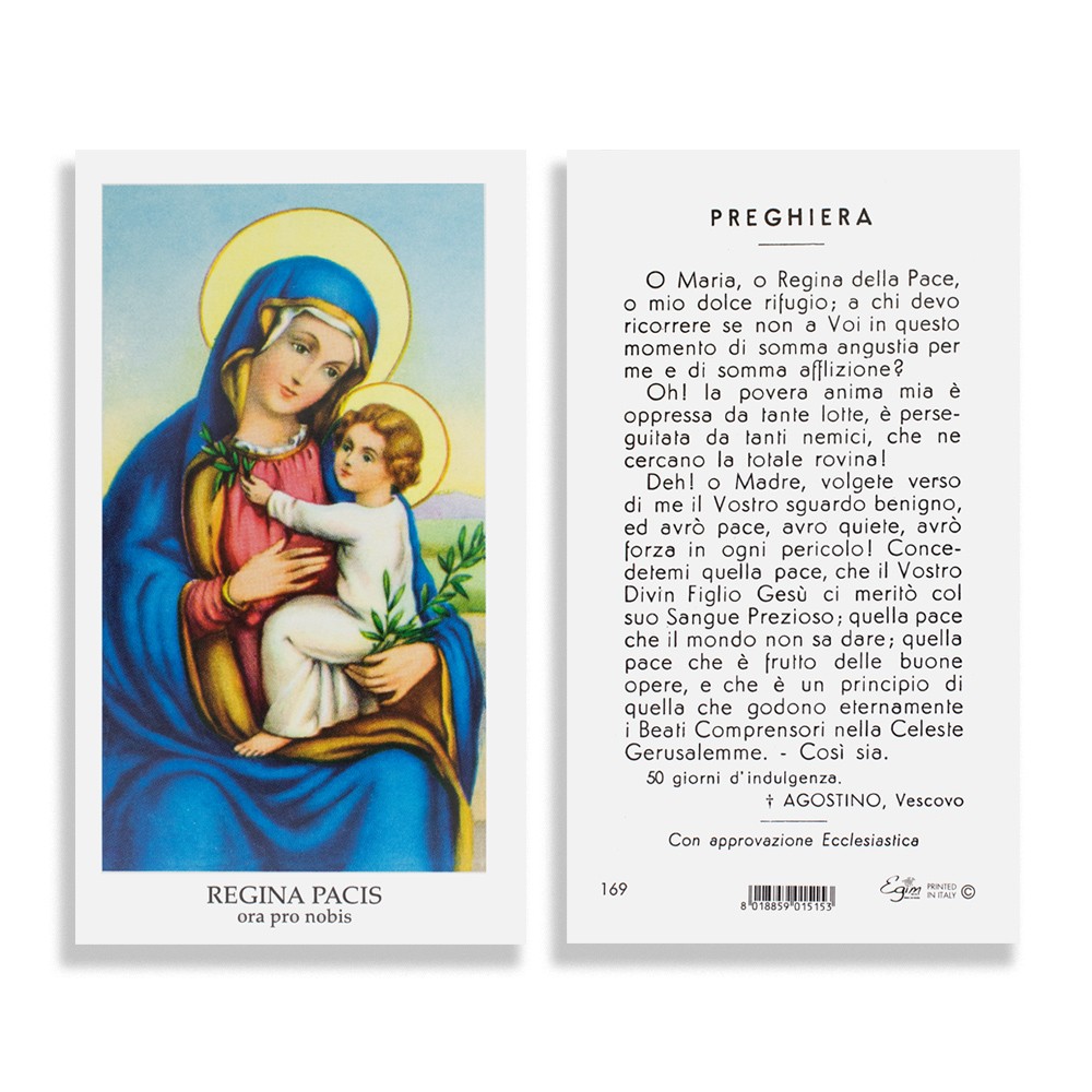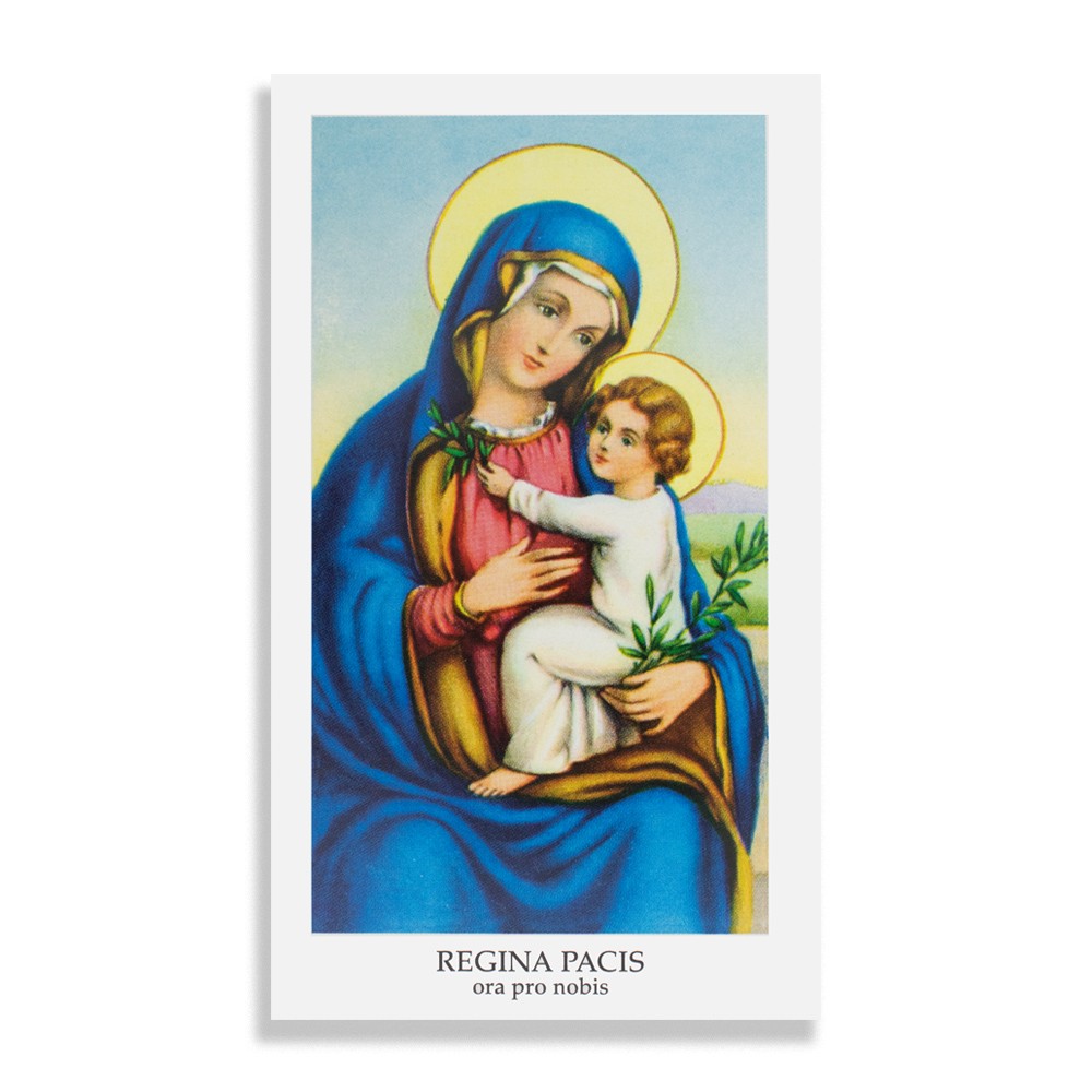 Santino religioso con preghiera Regina Pacis, vendibile in confezione da 100 pezzi.