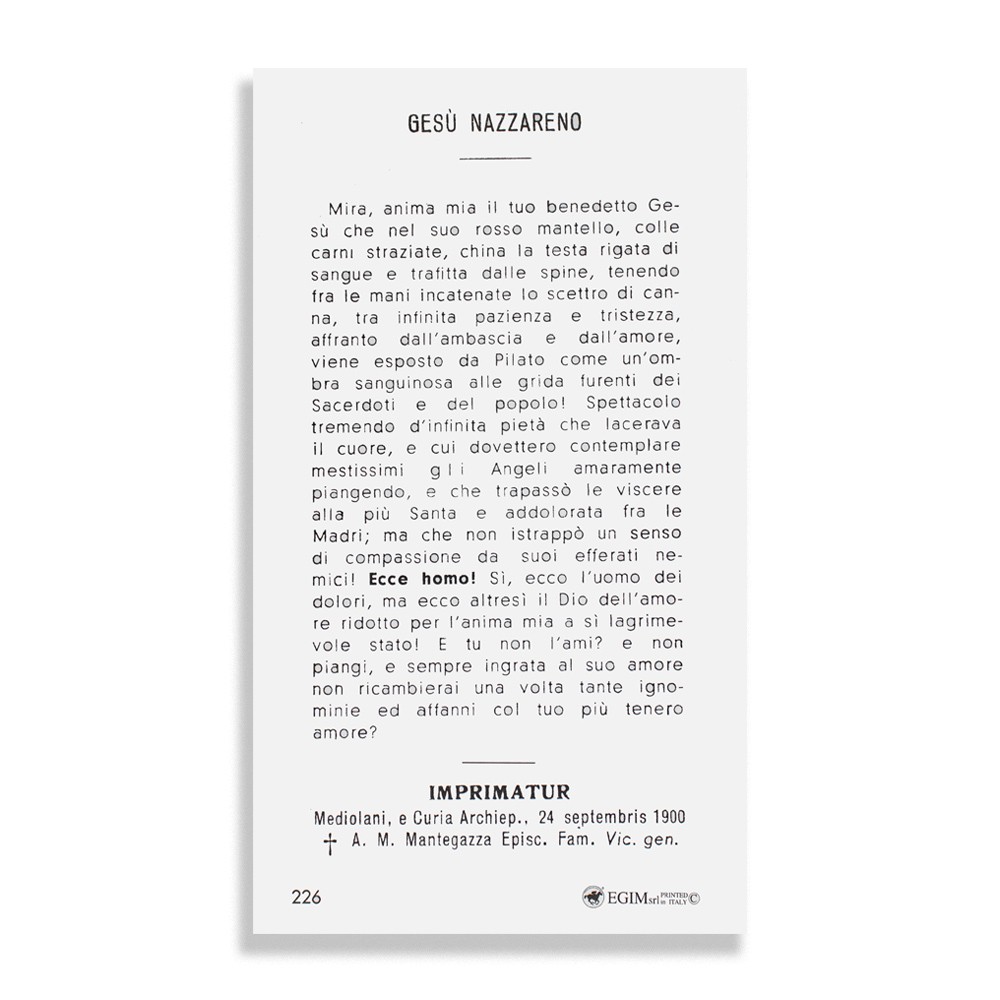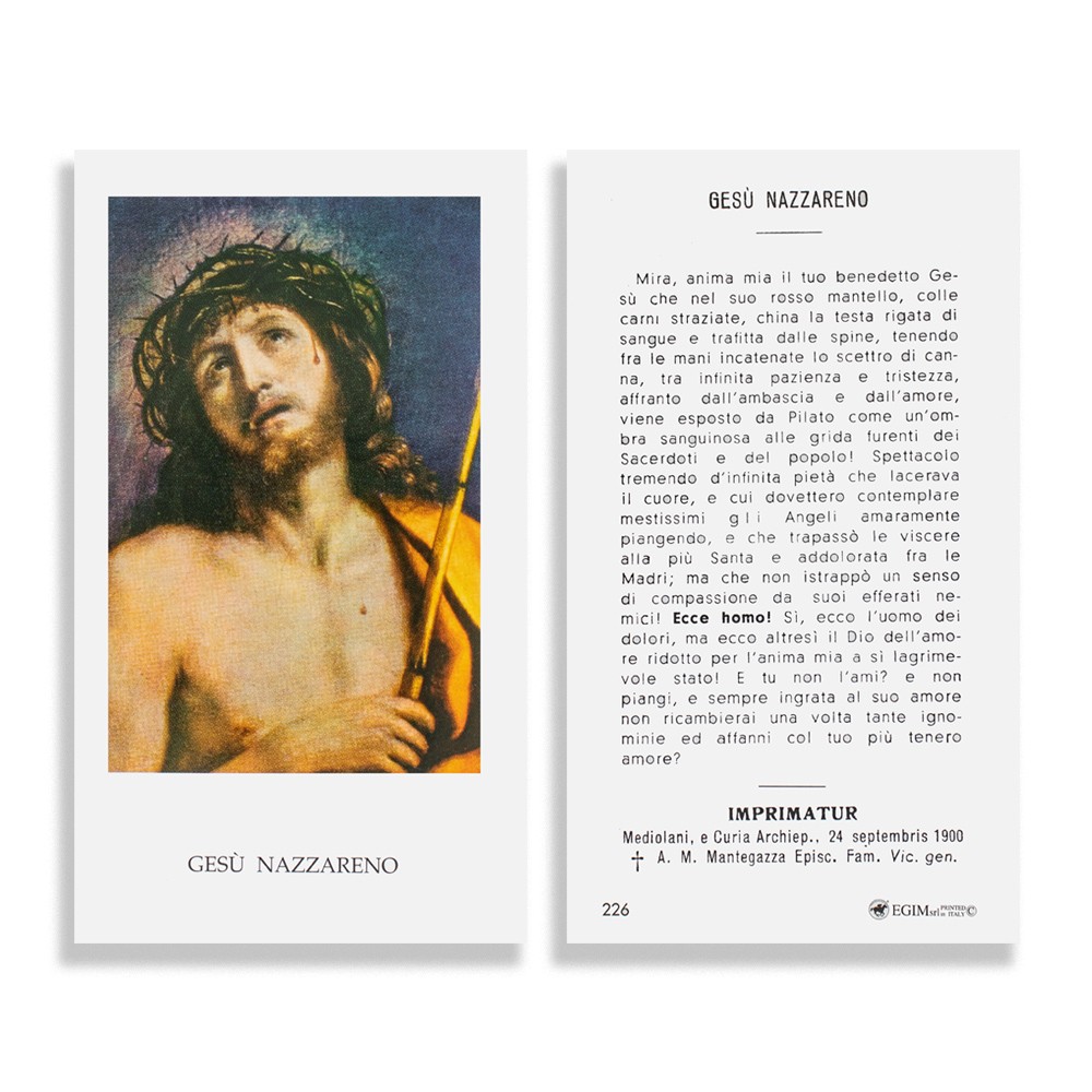 Santini con immagine di Gesù Nazareno sul fronte, mentre sul retro la preghiera.