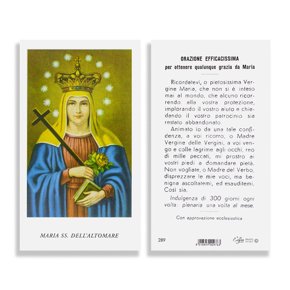 Immaginetta religiosa di Maria Santissima dell'Altomare, vendibile in confezione da 100 santini.