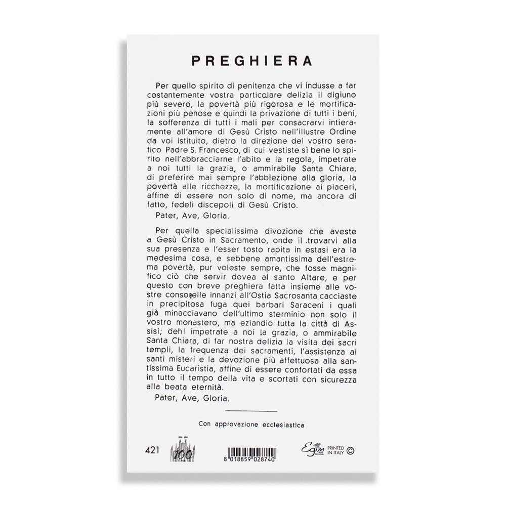 Santino con Preghiera a Santa Chiara