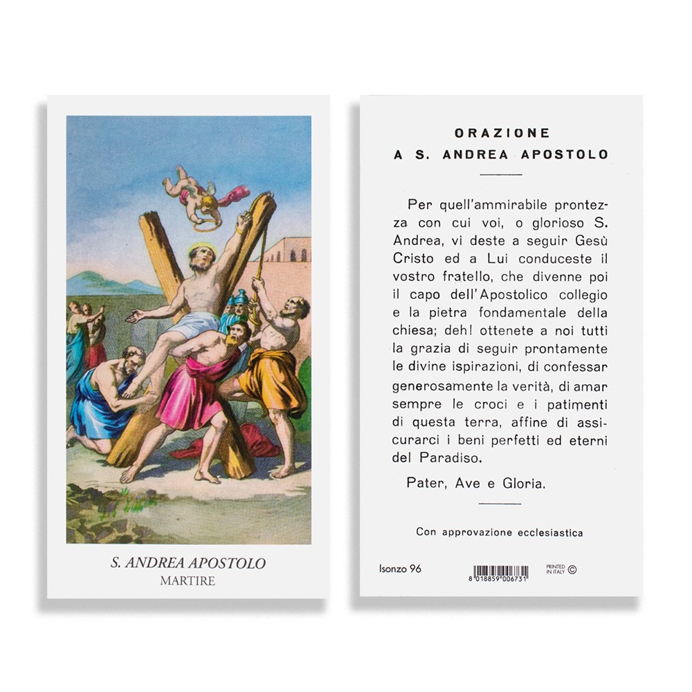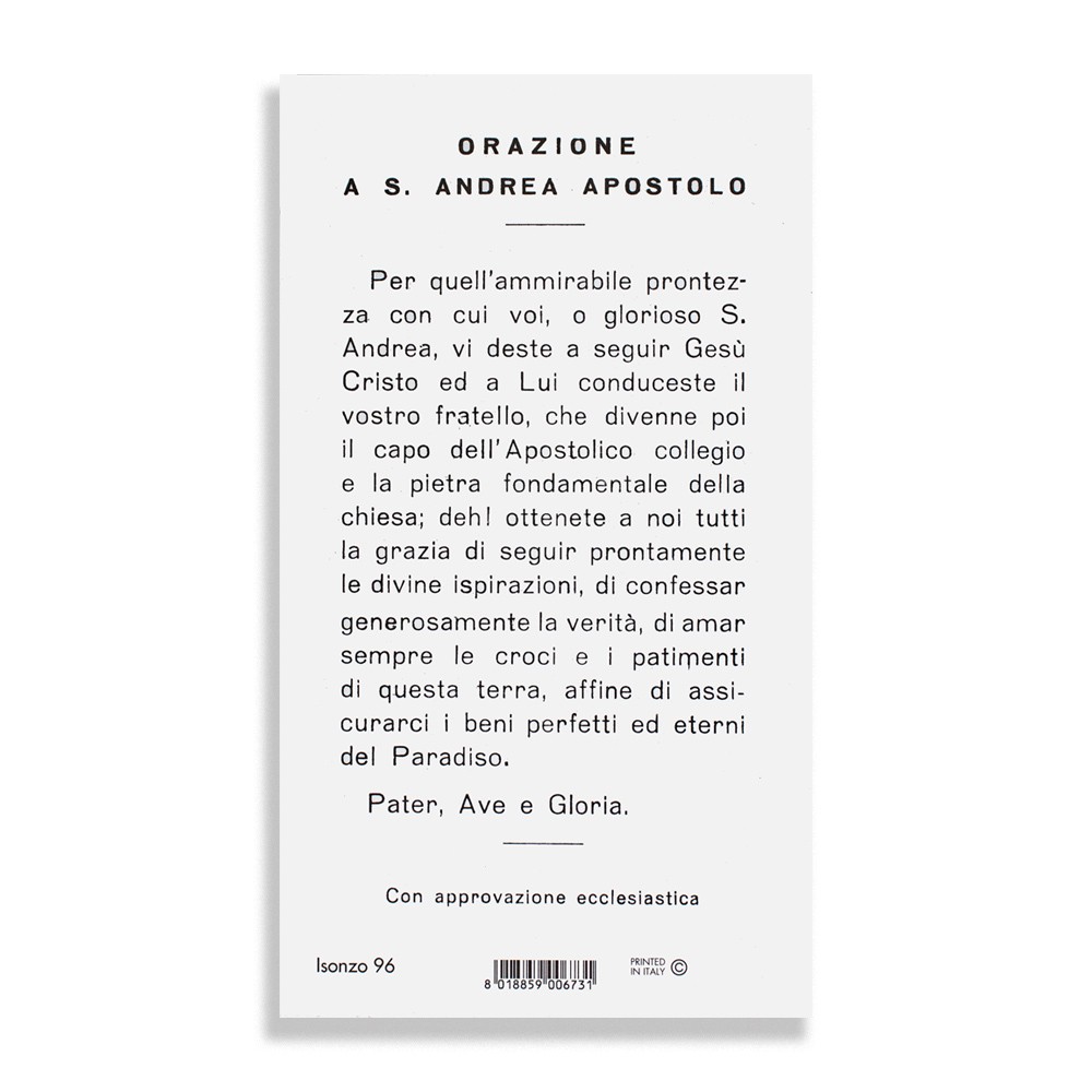 Sul retro di ogni singola immaginetta vi è stampata l'orazione a Sant'Adrea Apostolo Martire.