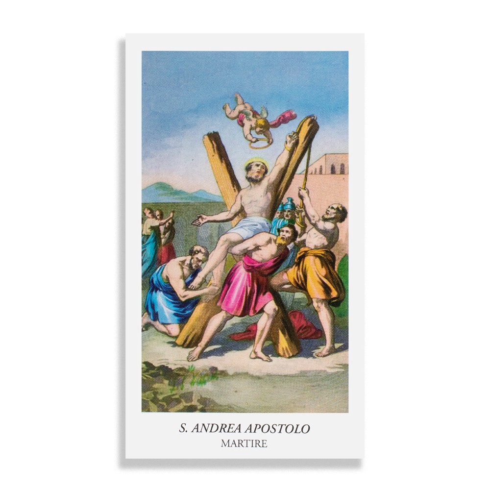 Santini con immagine di Sant'Adrea Apostolo Martire - Confezione da 100 santini.