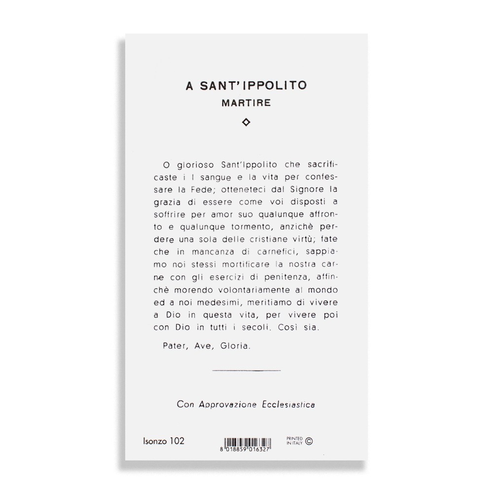 Santini con immagine e preghiera a Sant'Ippolito Martire.