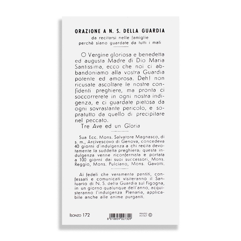 Santino con orazione a N. S. della Guardia, da recitare nelle famiglie perchè siano guardate da tutti i mali.