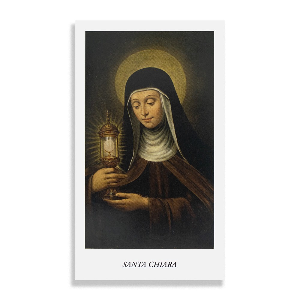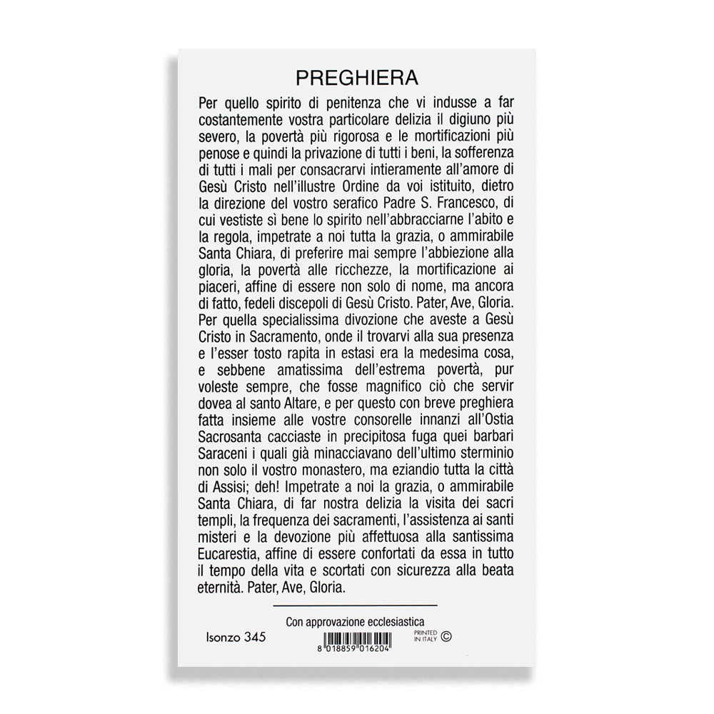 Immaginetta di Santa Chiara con preghiera sul retro in confezione da 100 pezzi.