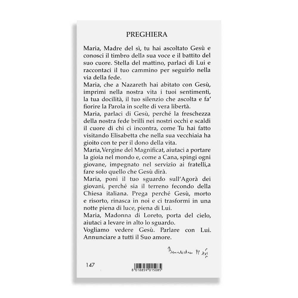 Immaginetta sacra con preghiera dedicata alla Madonna di Loreto.