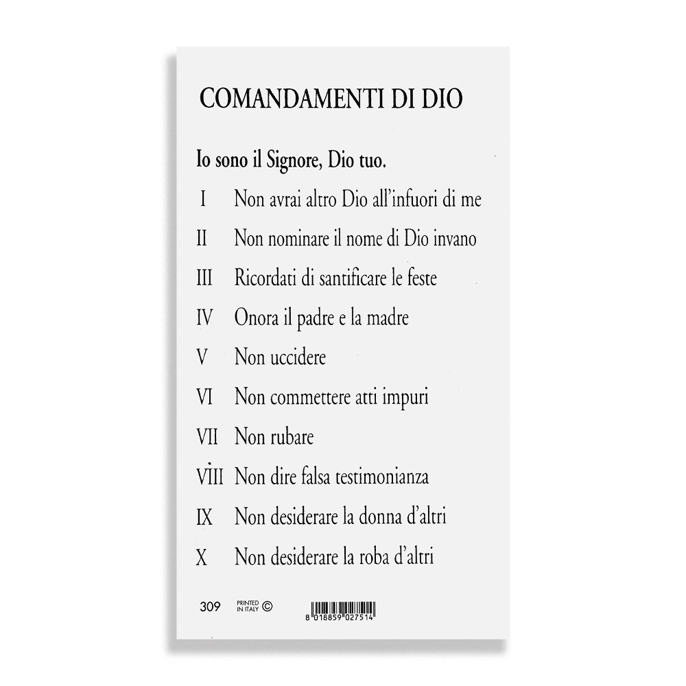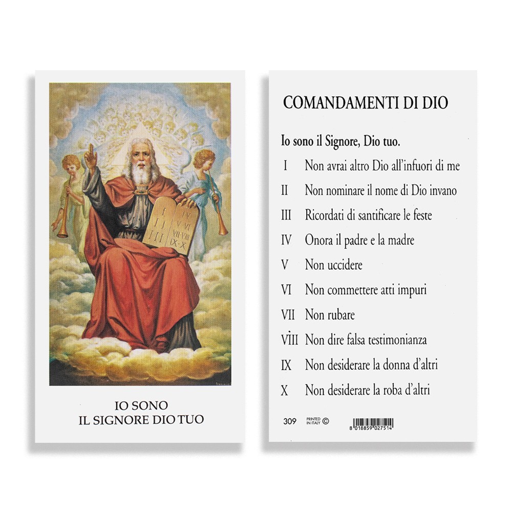 Su ogni immaginetta sono stampati i 10 Comandamenti di Dio.